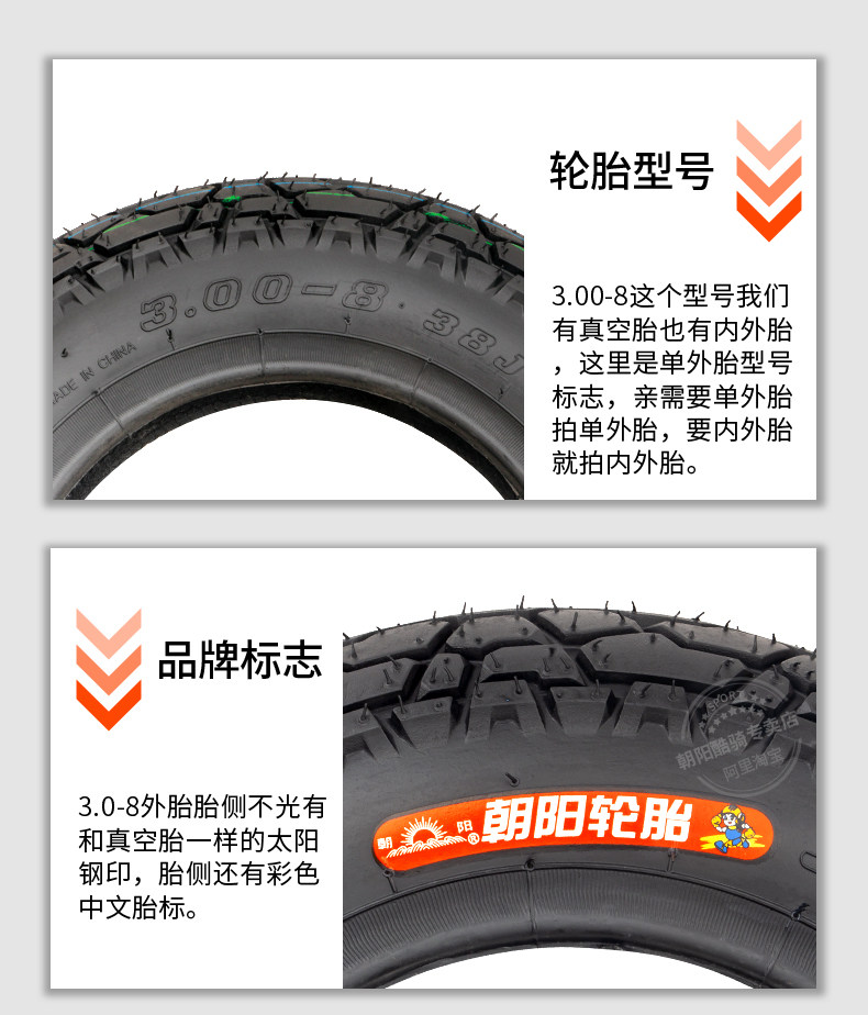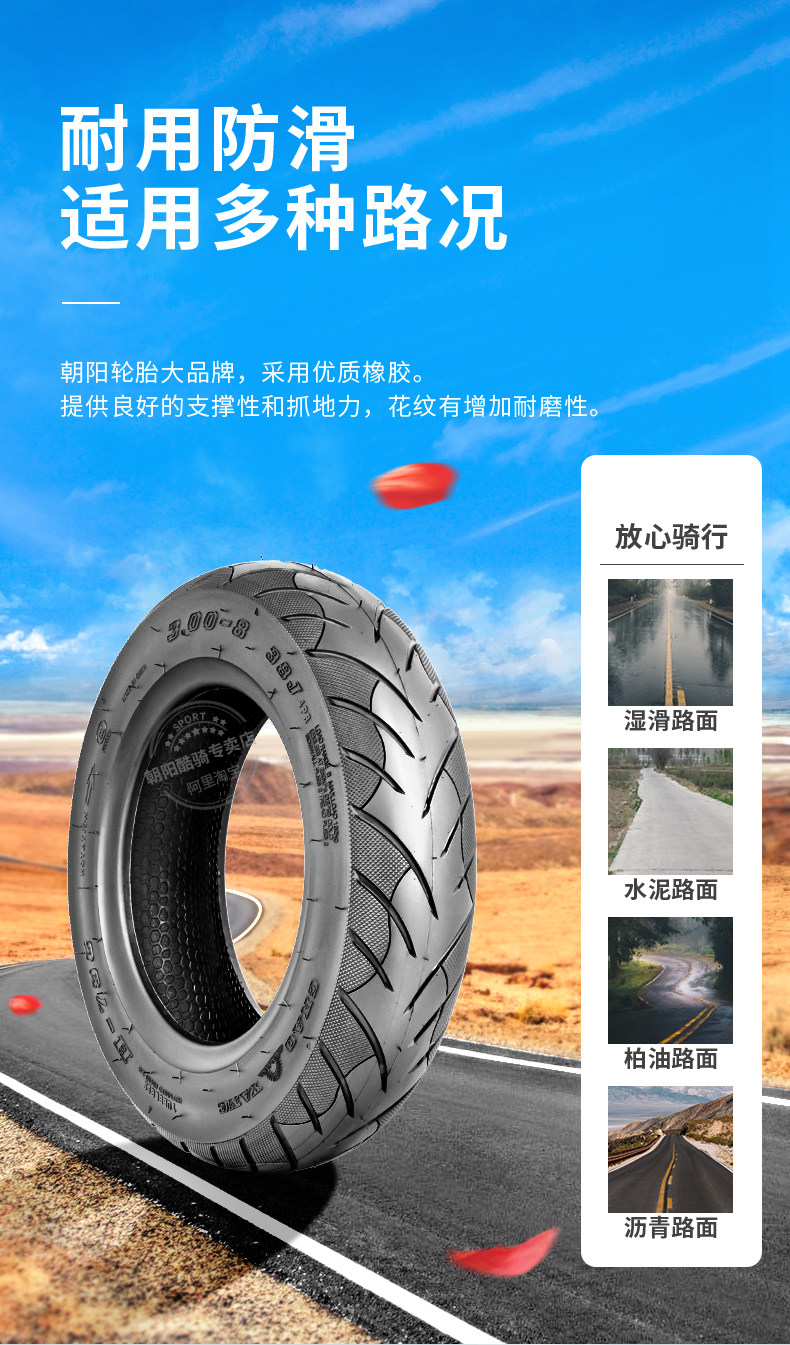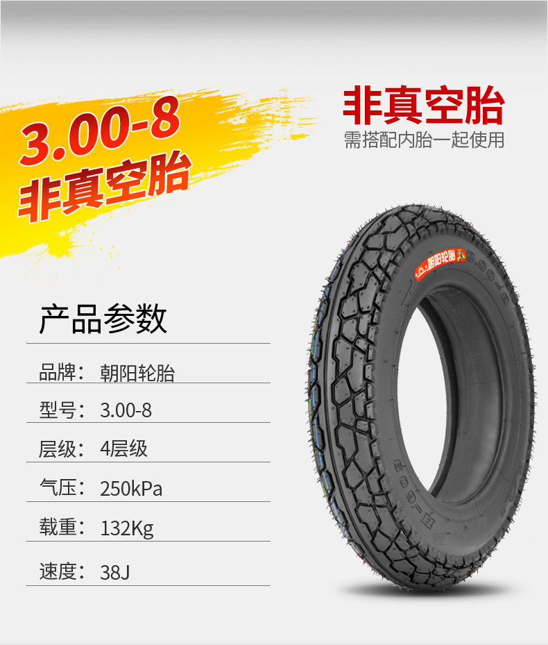 Chaoyang Tire Electric Vehicle Tire 300-8 Handcart Tire 2.75/3.00/3.50-8 Tubeless Tire Inner and Outer Tire