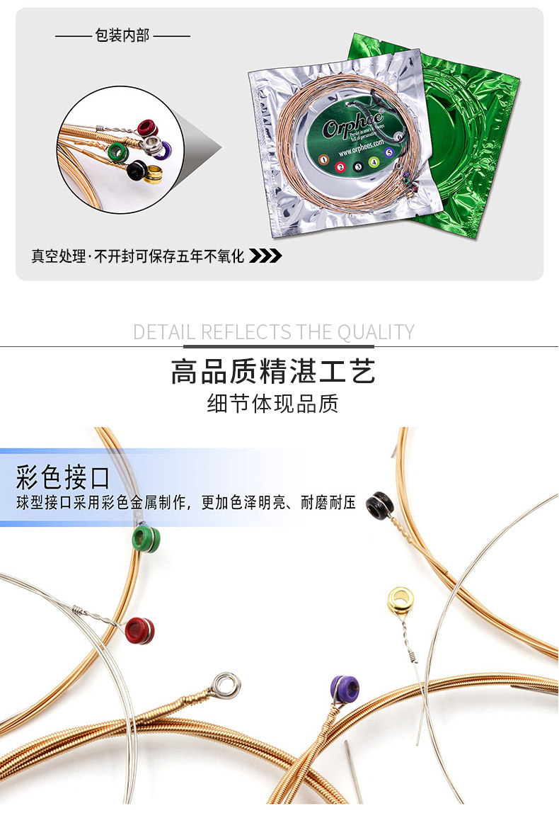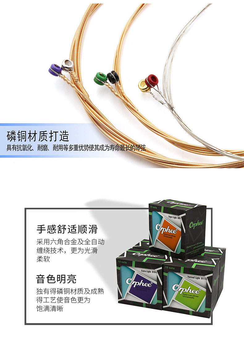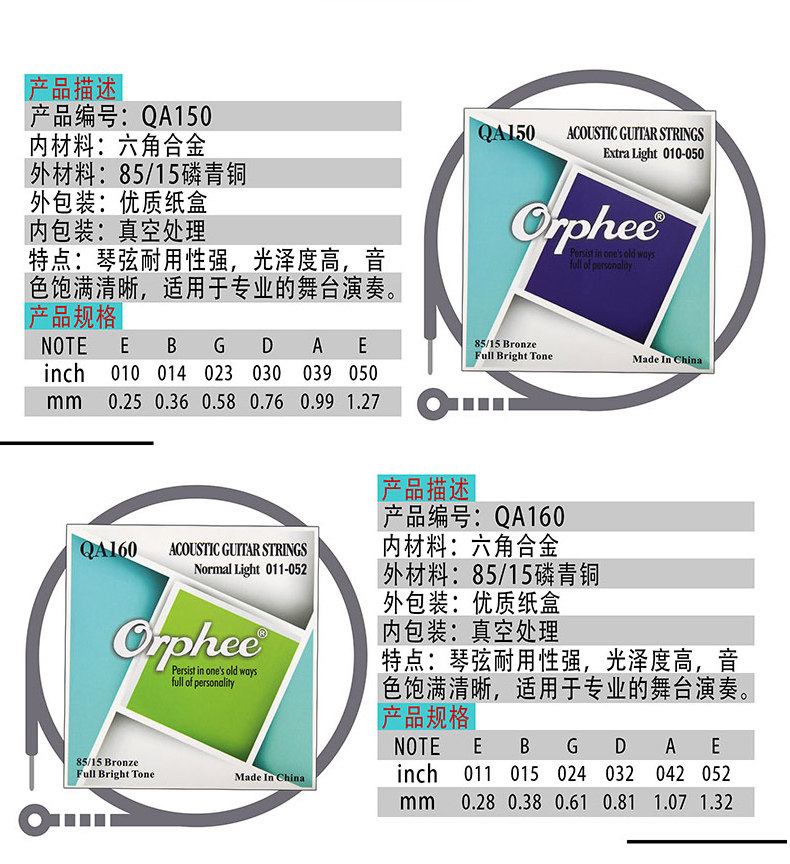 Authentic Orphee Guitar Strings, Folk Guitar Strings, Guitar Strings, Acoustic Guitar String Set, Set of 6 Strings