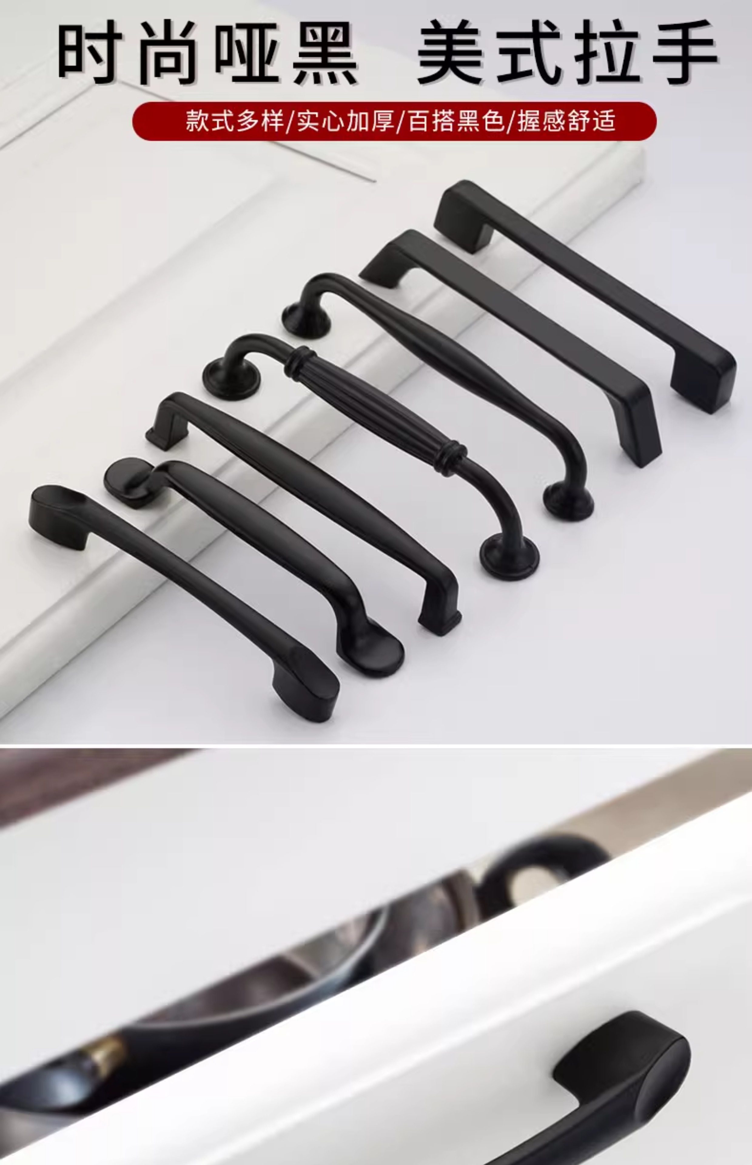 American-Style Black Wardrobe Cabinet Drawer Handle, Modern Minimalist Concealed Handle, European-Style Cabinet Door Single-Hole Small Handle