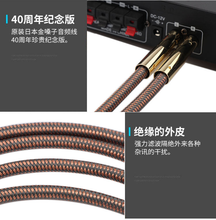 Golden Throat 40Th Anniversary Edition Audiophile Signal Cable Rca Dual Rca Audio Cable Speaker Connection Cable Male-To-Male