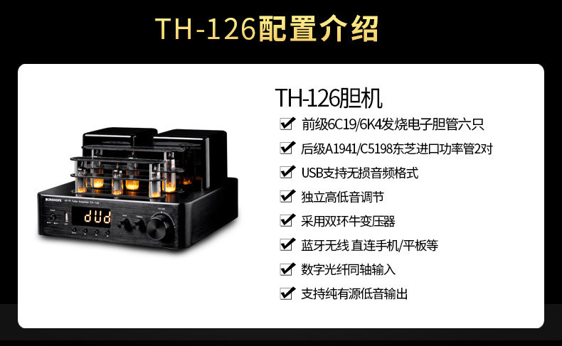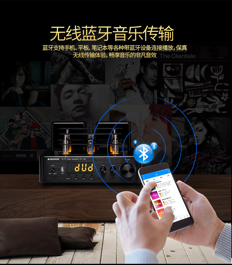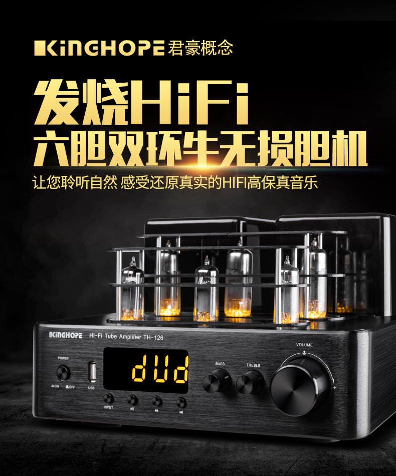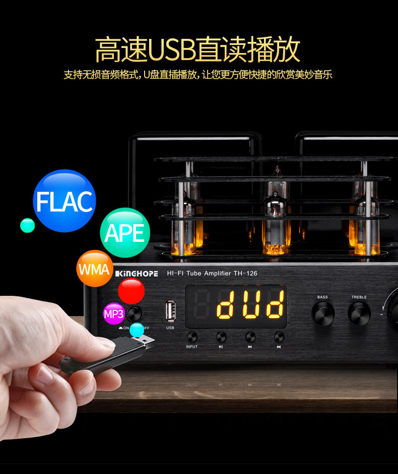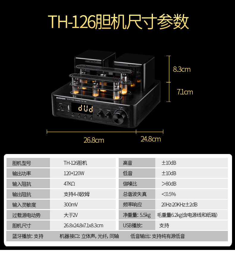 Kinghopeth-126 High-Performance Dual-Tube Tube Amplifier with Optical Fiber, Coaxial, and Bluetooth Hifi