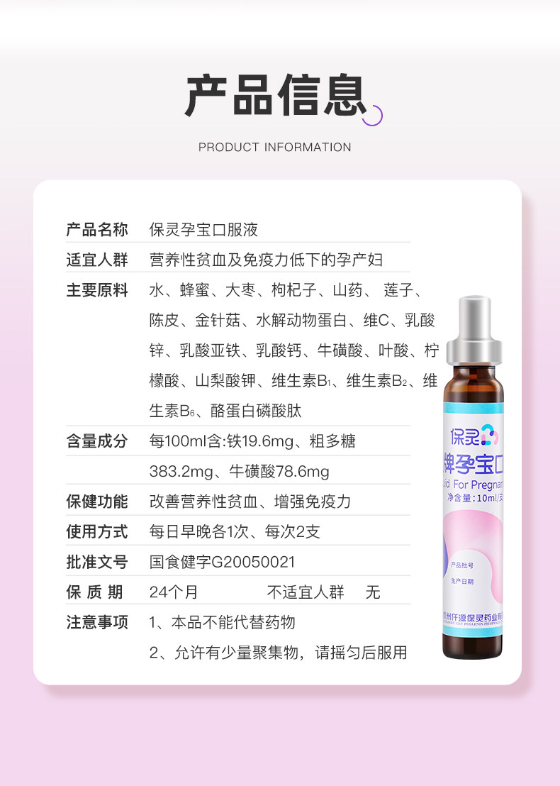 [Domestic Brand] Baoling Pregnant Women's Iron Supplement Oral Liquid for Anemia, Iron Supplement Flagship Store, 28 Bottles