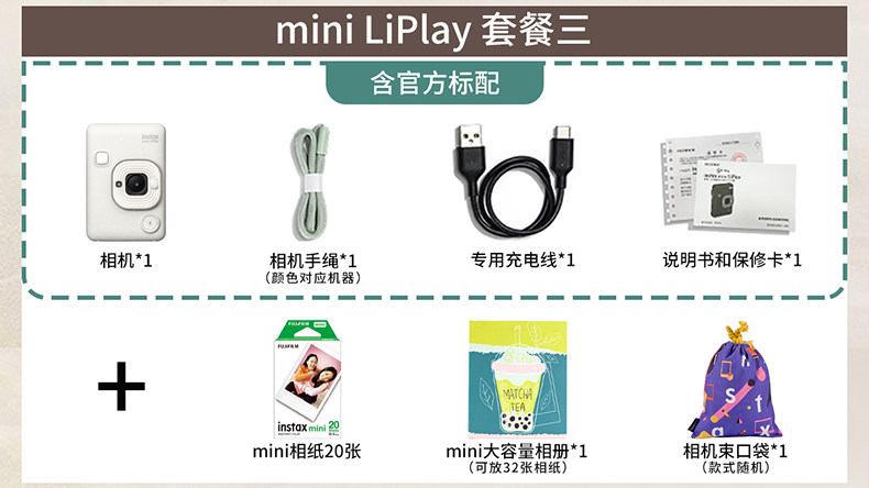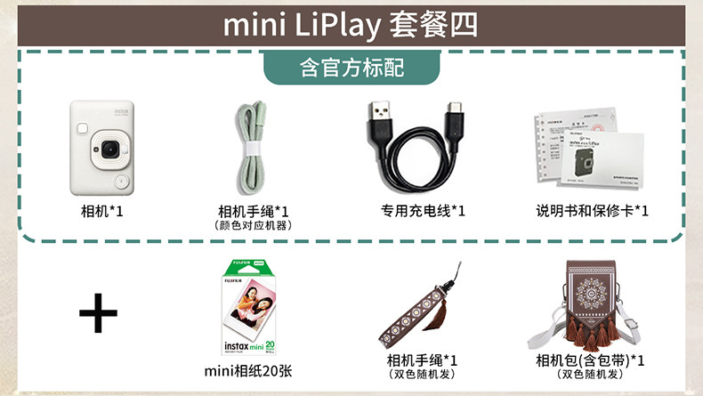 | Package Type | Official Standard,Set 1: Official Standard + 10 Sheets of Photo Paper,Set 2: Official Standard + 20 Sheets of Photo Paper,Set 3: Official Standard Configuration + 20 Sheets of Photo Paper + Large-Capacity Photo Album + Drawstring Pocket,Set 4: Official Standard Configuration + 20 Sheets of Photo Paper + Camera Bag + Camera Shoulder Strap,Set 5: Official Standard + 40 Sheets of Photo Paper,Set Six: Official Standard Package + 40 Sheets of Photo Paper + Camera Bag + Camera Strap |