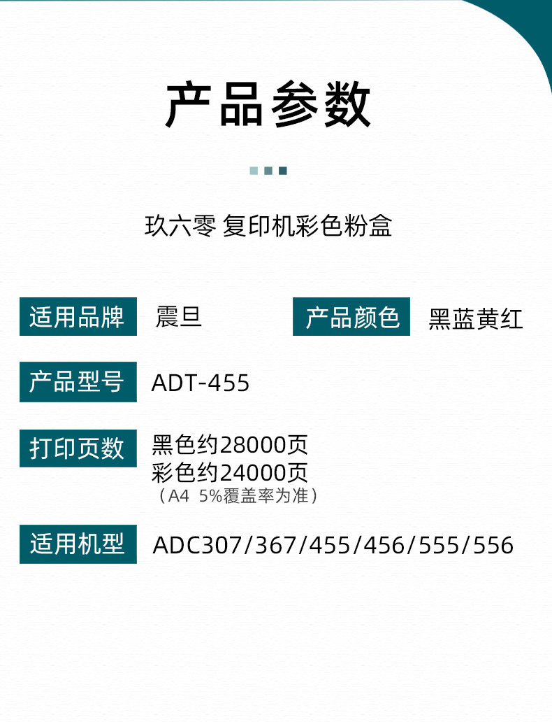 Compatible with Zhendan Adt-307K Toner Cartridge Adc307 Adc367 455 Adc456 Adc555 556 Color Multifunction Printer Ink Cartridge Adt-455 Copier Toner Powder Cartridge