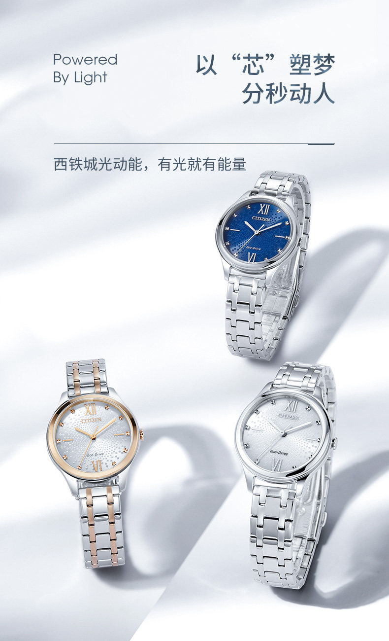 Citizen Eco-Drive Women's Watch Official Website Genuine Fashion Casual Steel Band Women's Watch Chinese Valentine's Day Gift Fe6090