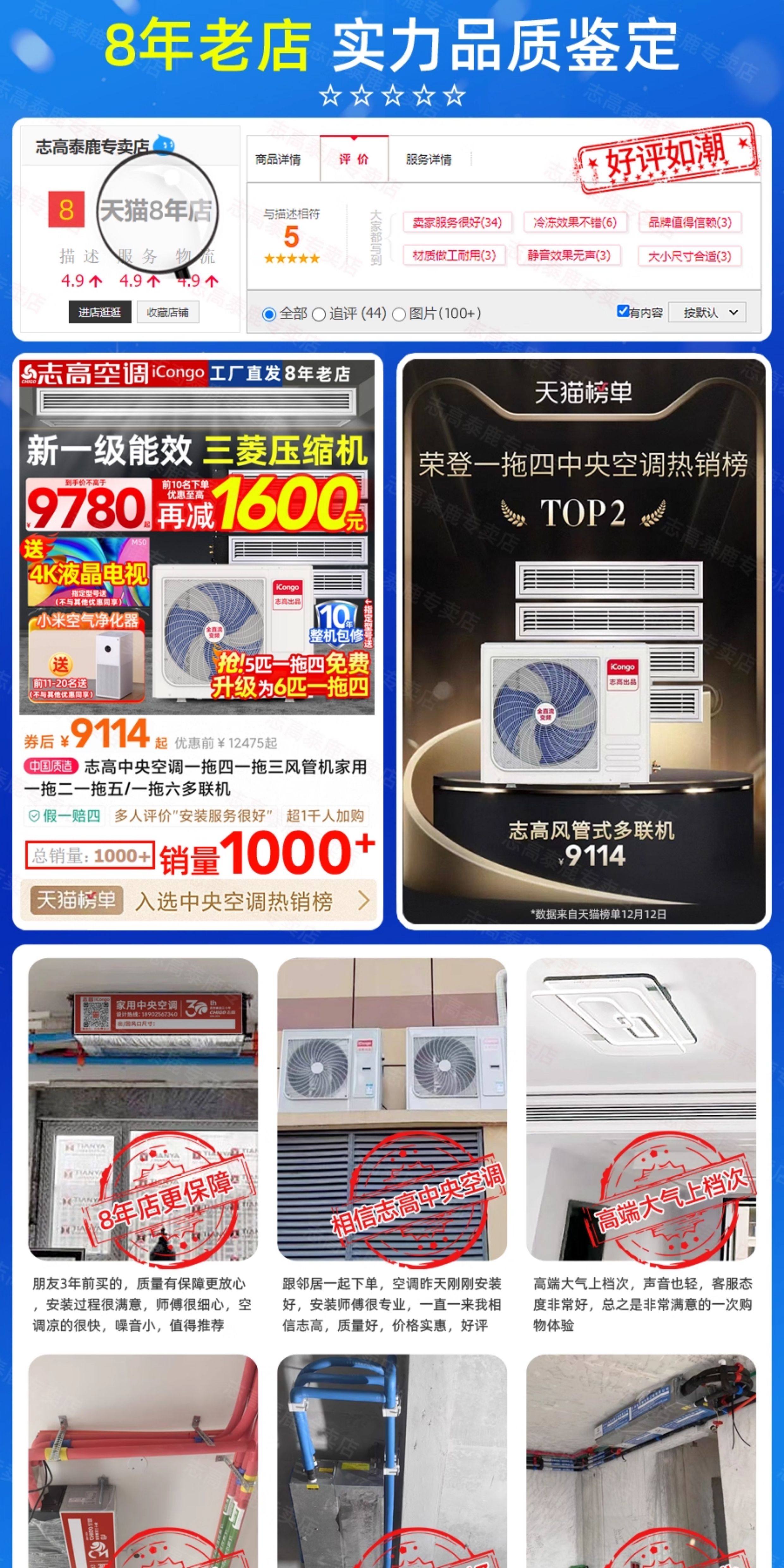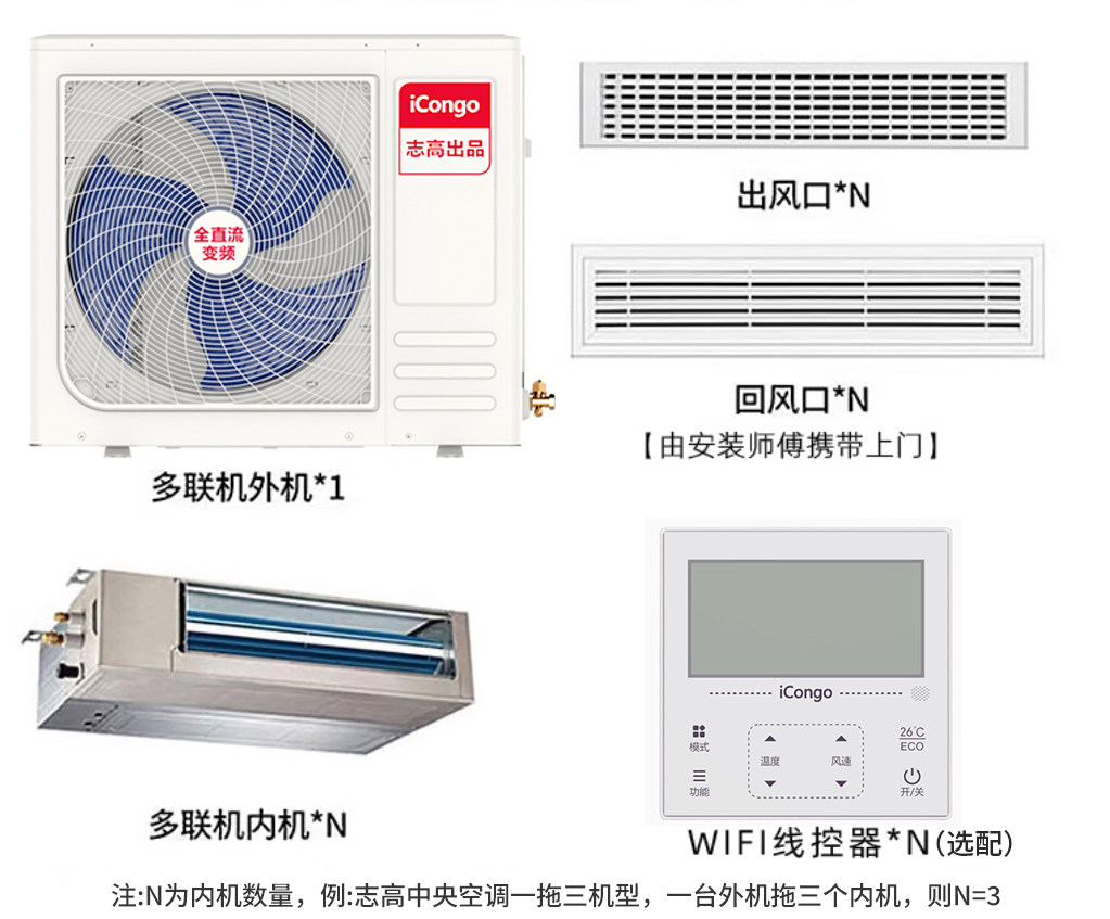 Chigo Central Air Conditioner One-To-Five, One-To-Six/Seven/Eight/Nine for Home Use in Villas, Commercial Use in Offices, Multi-Split System