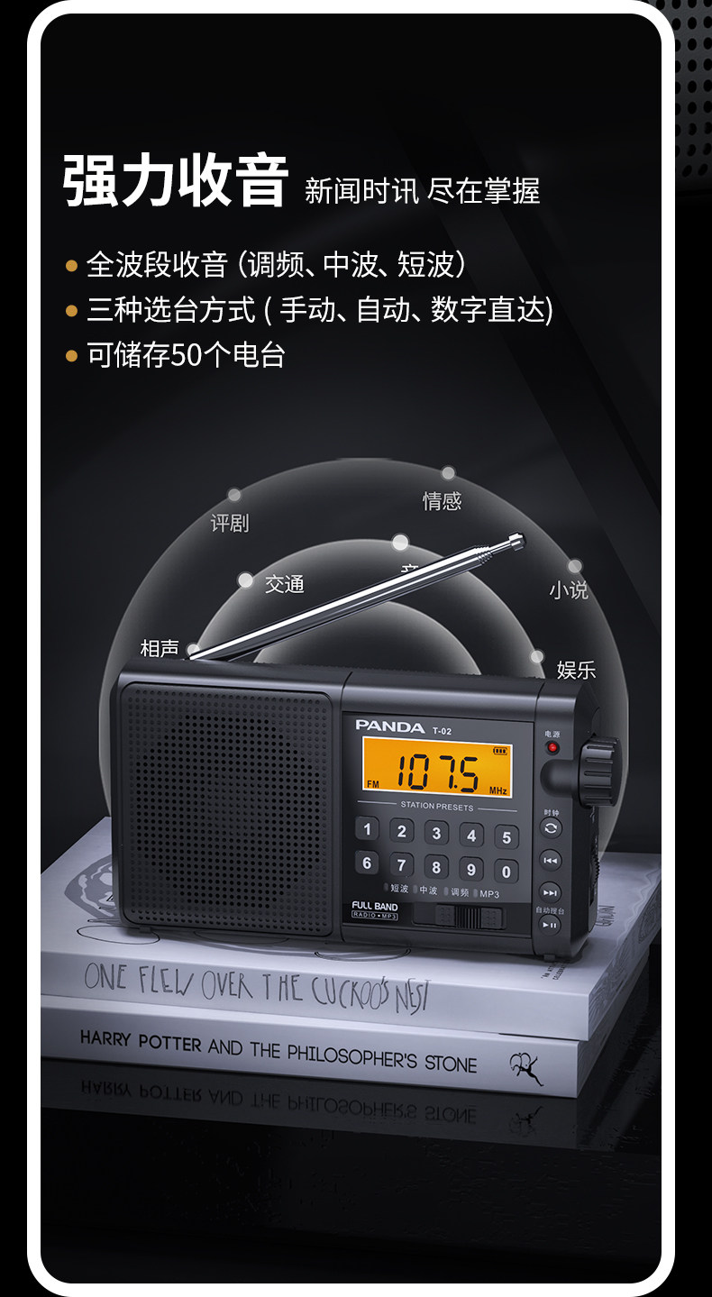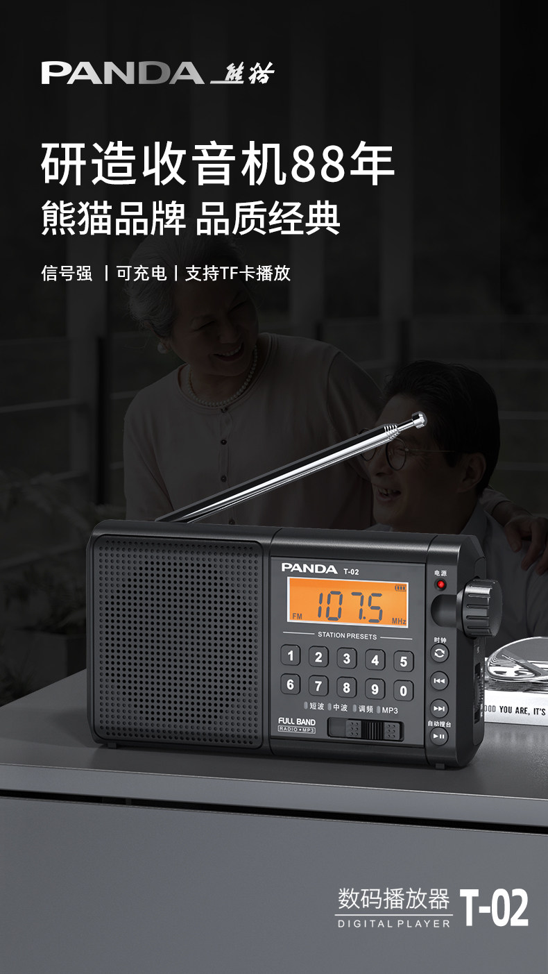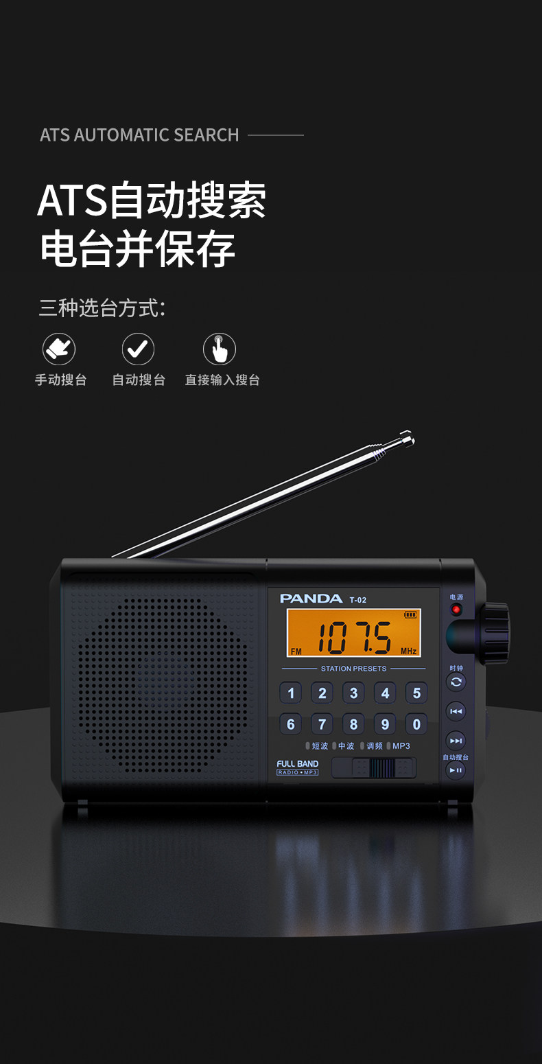 Panda T02 New Full-Band Radio for the Elderly, Multifunctional Broadcast Semiconductor Radio for Seniors, Rechargeable 774
