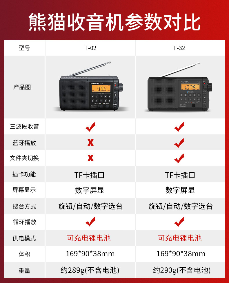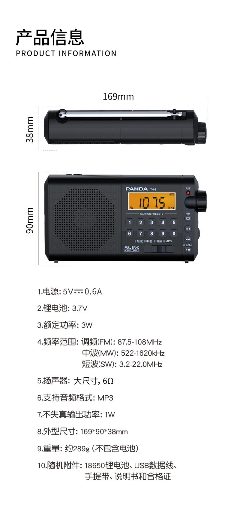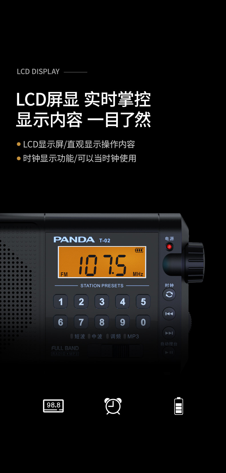Panda T02 New Full-Band Radio for the Elderly, Multifunctional Broadcast Semiconductor Radio for Seniors, Rechargeable 774