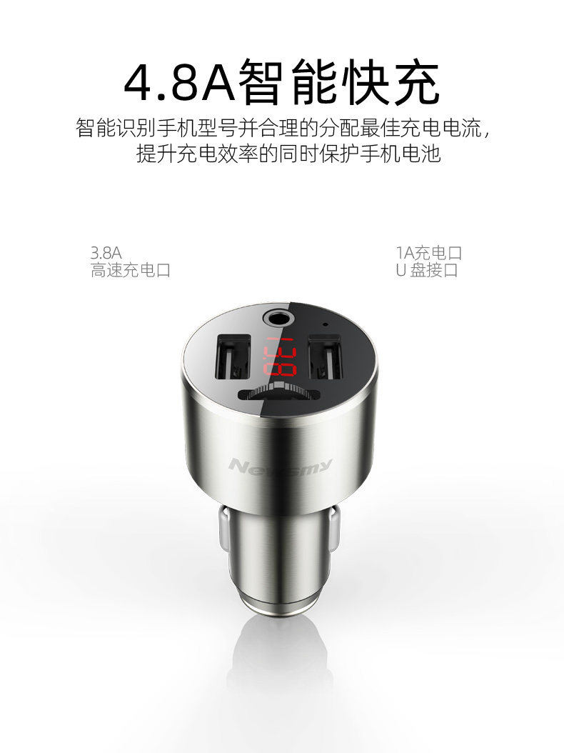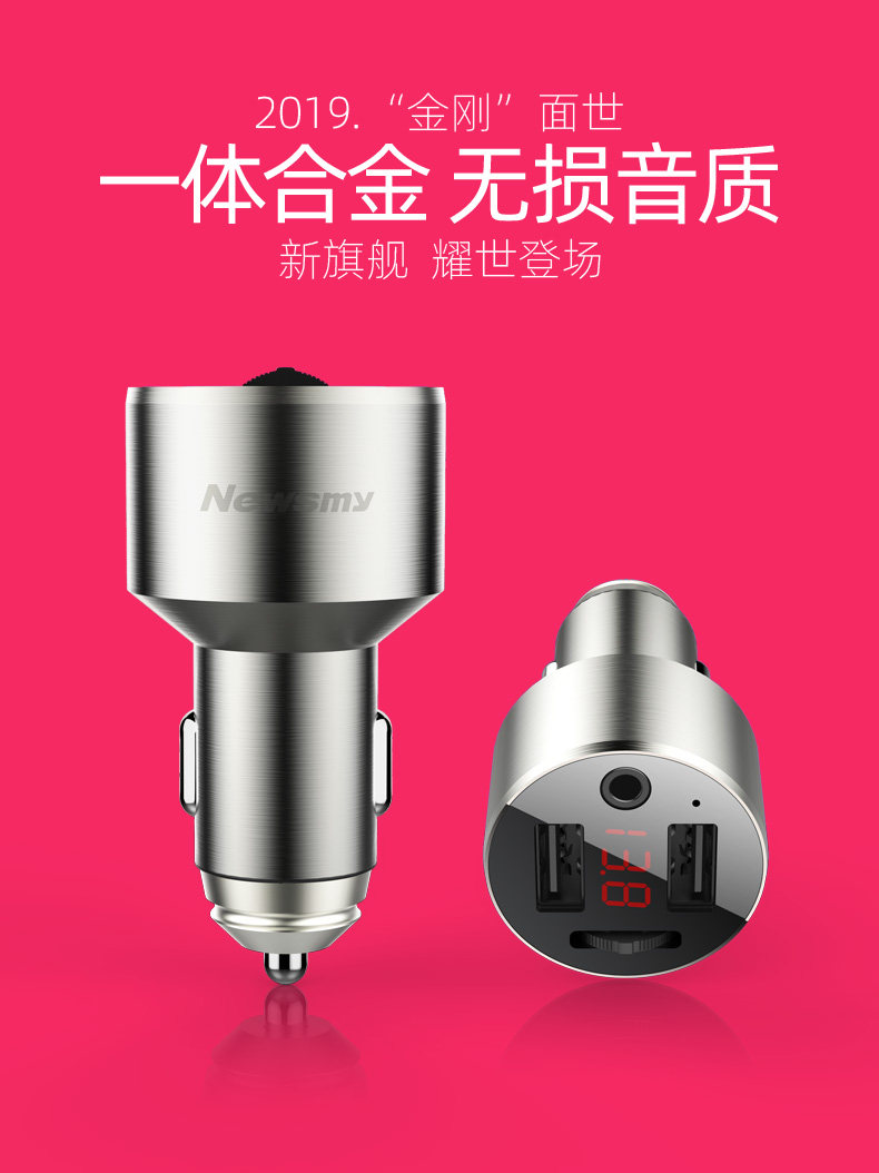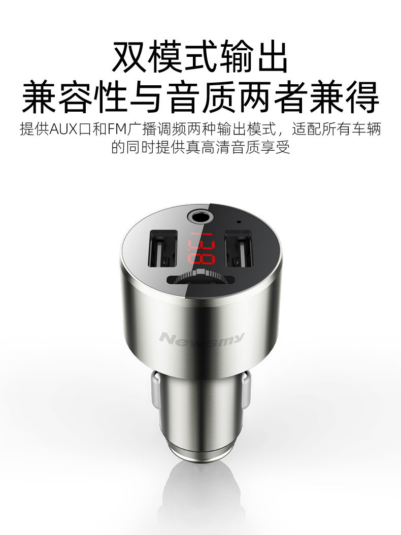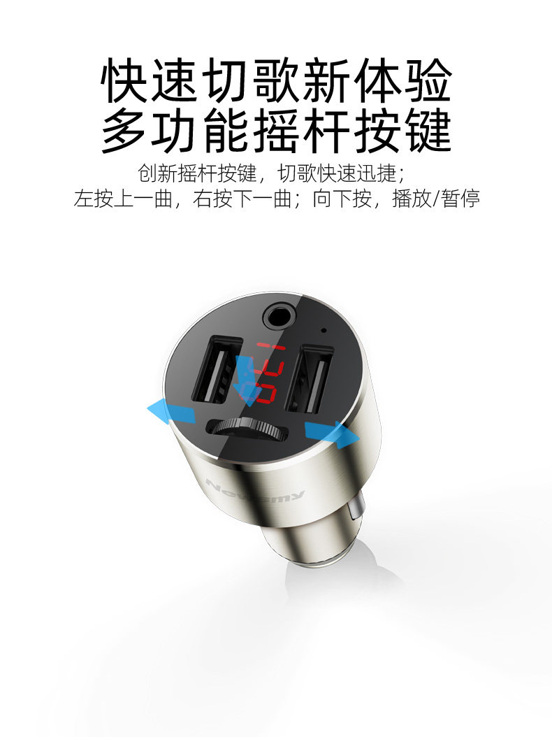 [Integrated Alloy Aux Direct Connection]Newman Car Bluetooth Mp3 Player Receiver USB Flash Drive Fast Charging Hands-Free