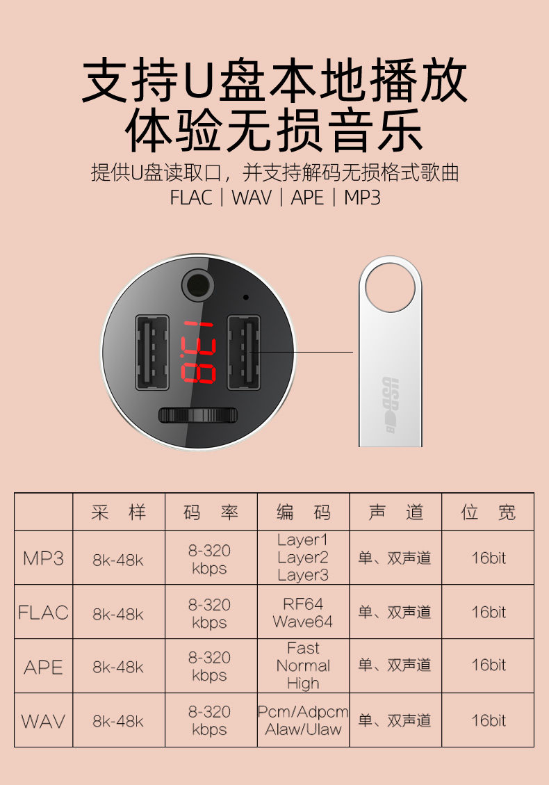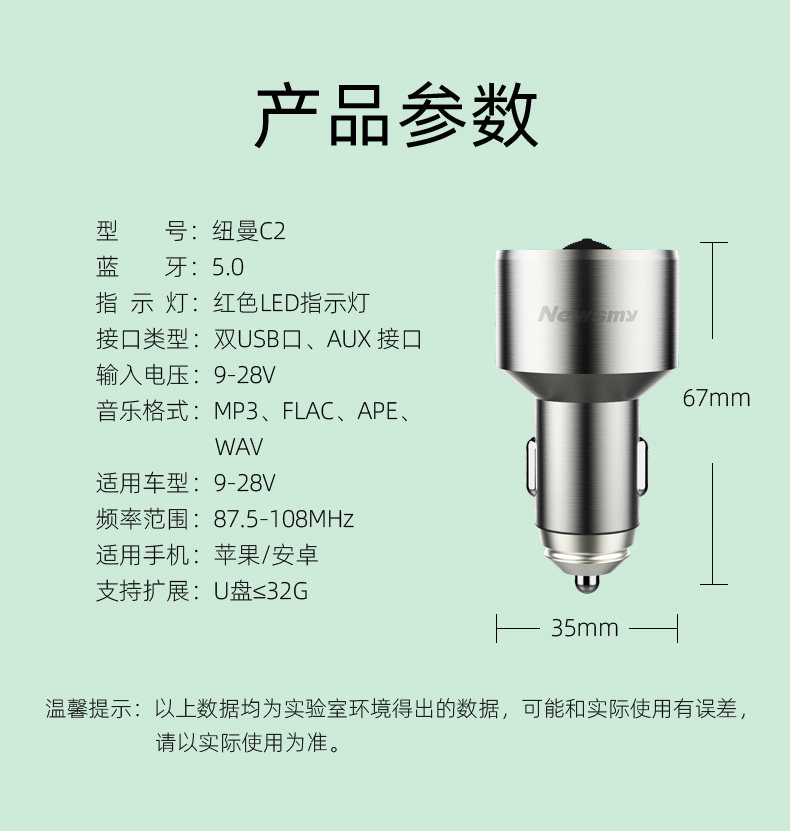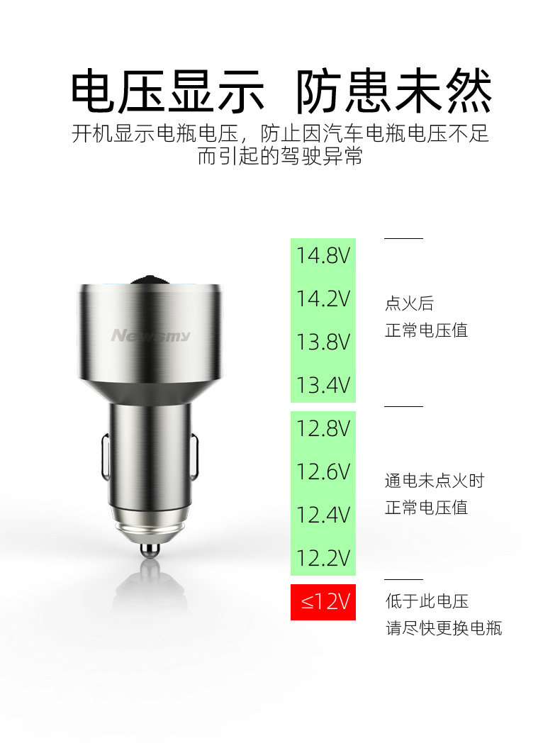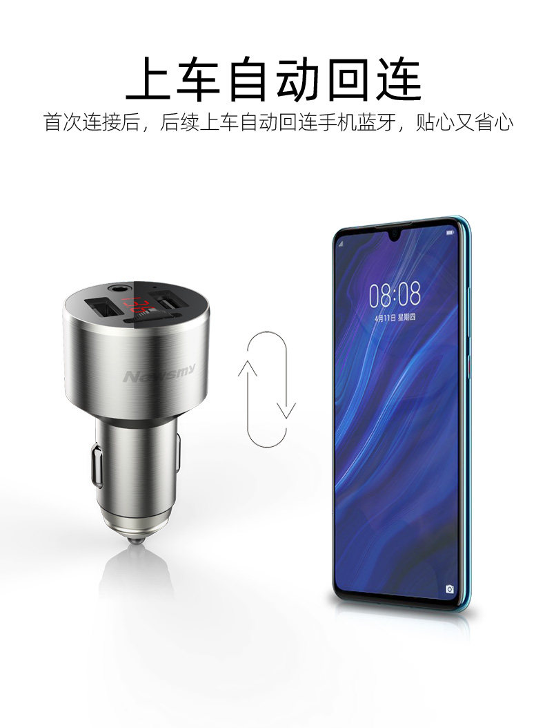 [Integrated Alloy Aux Direct Connection]Newman Car Bluetooth Mp3 Player Receiver USB Flash Drive Fast Charging Hands-Free