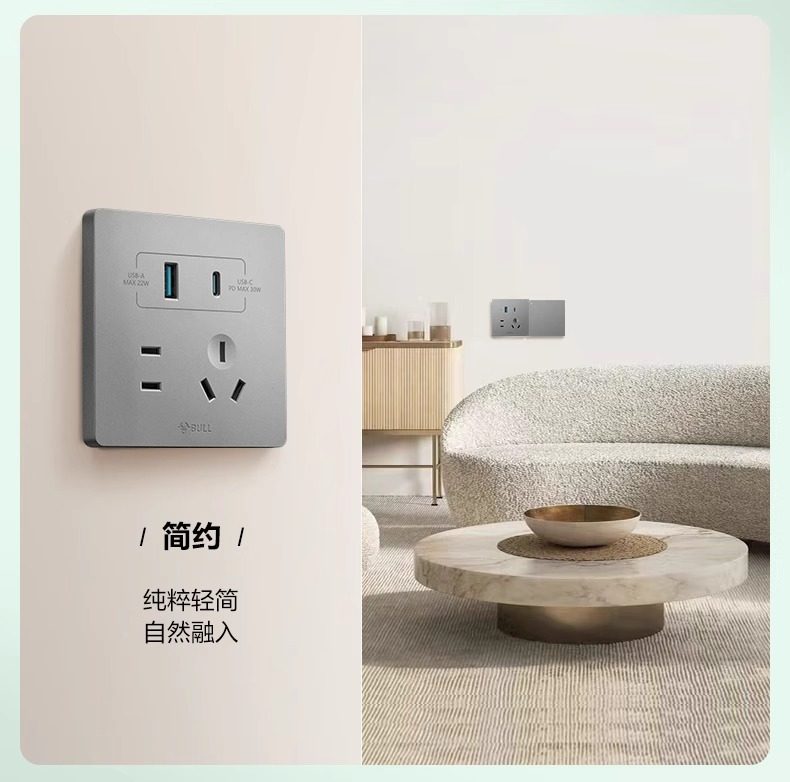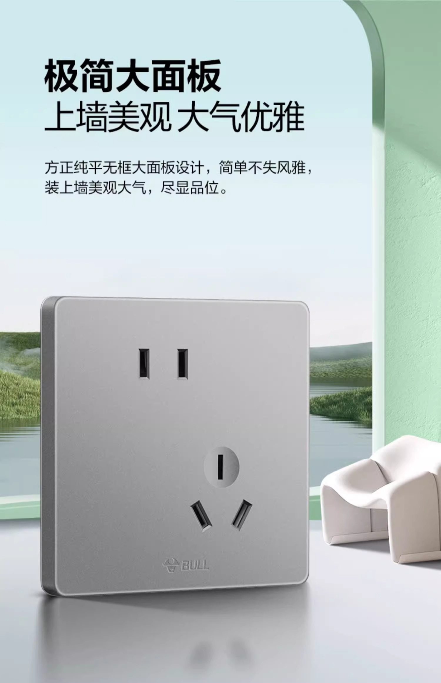 Bull Switch Socket Panel Official Website 86 Type Household Concealed Installation 16A Air Conditioner Five-Hole Socket USB Switch Panel