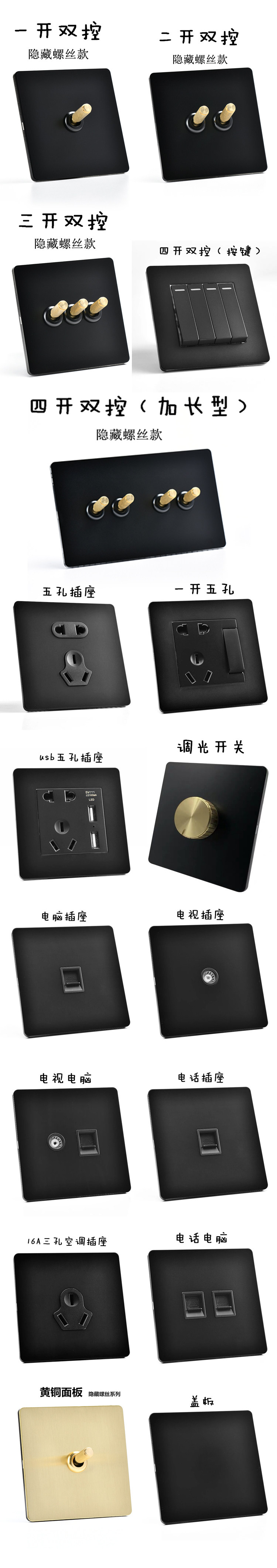 | Color Classification | One-On-Two Control, Single/Dual Control Universal,Dual Opening and Dual Control, Single/Dual Control Universal,Three-Way, Dual-Control, Compatible with Single/Dual Control Setups,Four-Way, Dual Control, Compatible with Single/Dual Control Setups,Visible Screw Model, One Open and Double Control, Single/Double Control Neutral,Visible Screw Type, Two-Open and Dual-Control, Single/Dual-Control Universal,Visible Screw Model, Three-Open and Dual-Control, Single/Dual-Control Universal,Visible Screw Model, Four-Open and Dual-Control, Single/Dual-Control Universal,Five Hole Socket,Inclined Five Holes (Misaligned Five Holes),20W Fast Charging Five Holes (Type-C),30W Fast Charging Four Holes (Type-C),16A Three-Hole Socket,One Hole with Five Holes,Computer,Tv,Phone Computer,Tv Computer,Phone,Cover,Alarm Switch,Dimmer Switch |