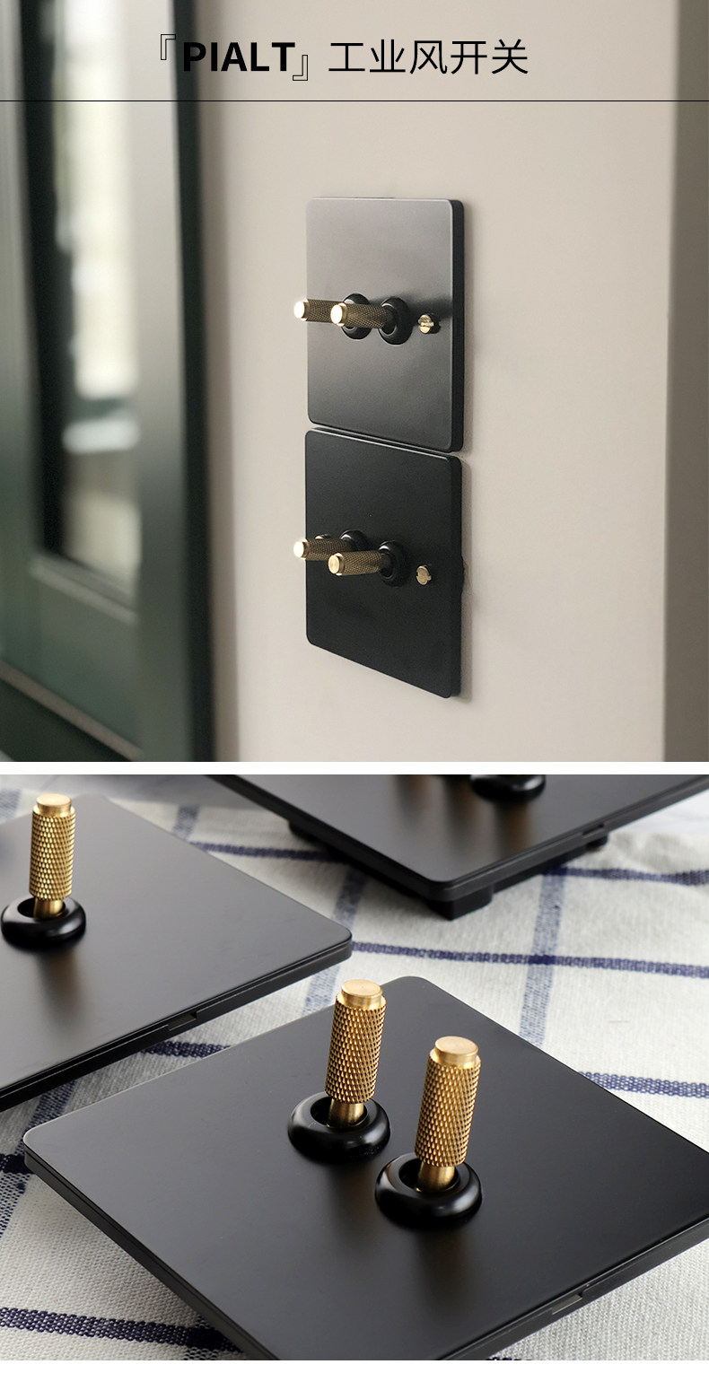 Pialt 86 Type Home Decoration Switch Industrial Style Retro Knurled Lever Black Panel Switch Socket