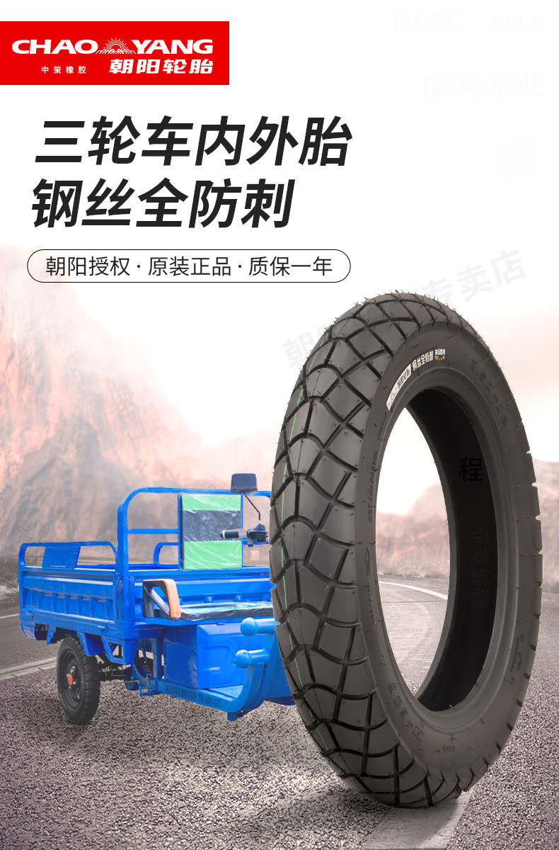 Chaoyang Tire Electric Tricycle Tire Steel Wire Tire 3.00/3.50/3.75/4.00-12 Inner and Outer Tire Super Puncture-Resistant