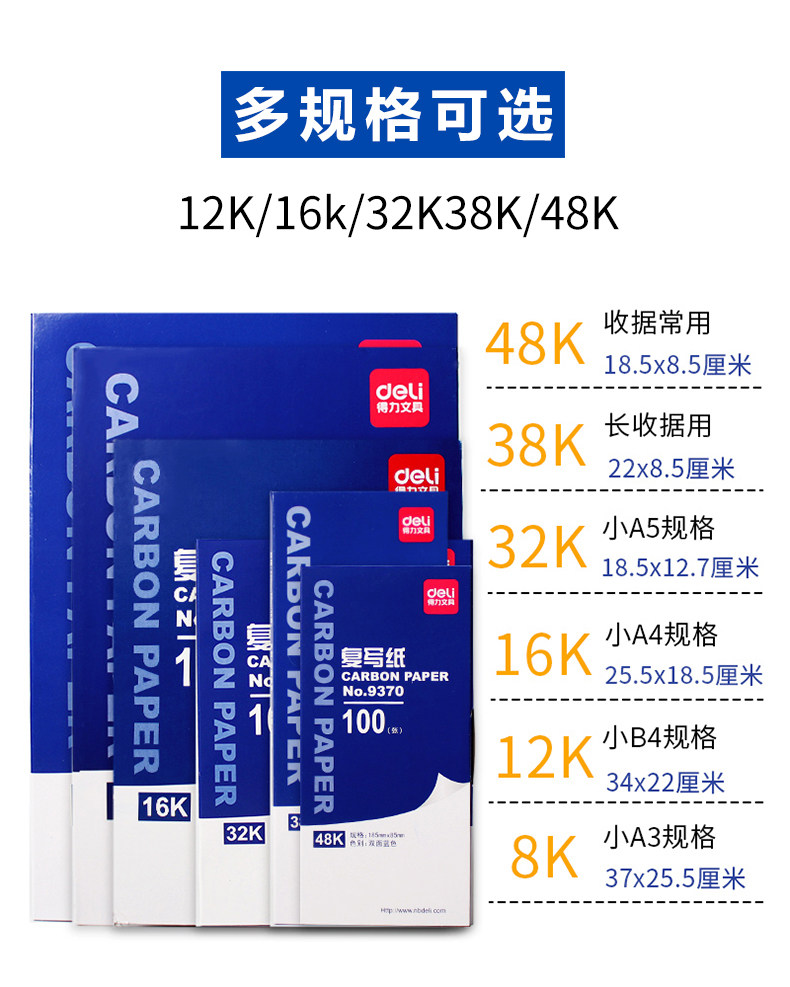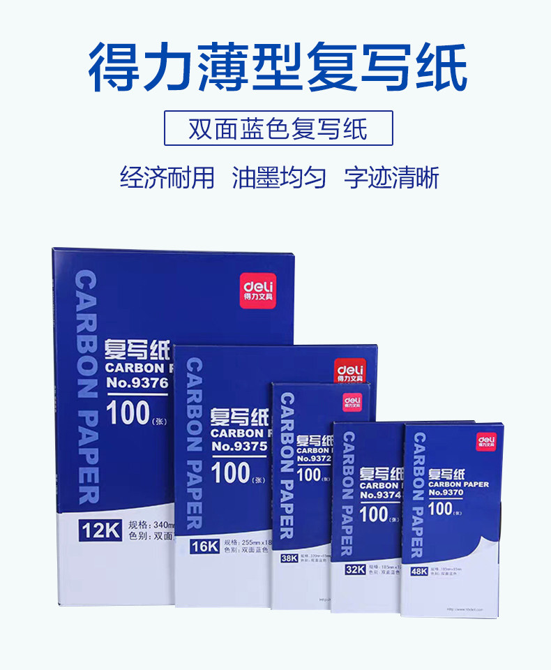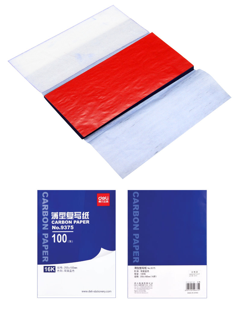 Deli Carbon Paper A4 Double-Sided Handwriting Carbon Paper Blue Financial Invoice General-Purpose Large Sheet Printing Paper Red 48K Carbon Paper Copy Paper Blue 100 Sheets Thin Blue Printing Paper 16K Wholesale
