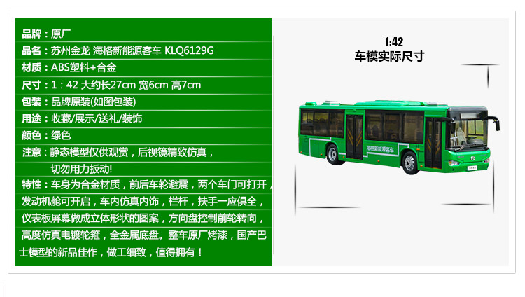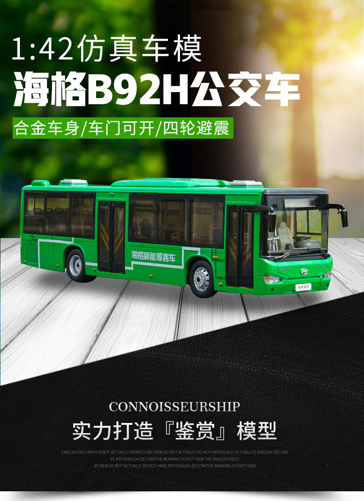 1:42 Scale Original Suzhou Jinlong Higer Bus B92H Higer New Energy Bus Model