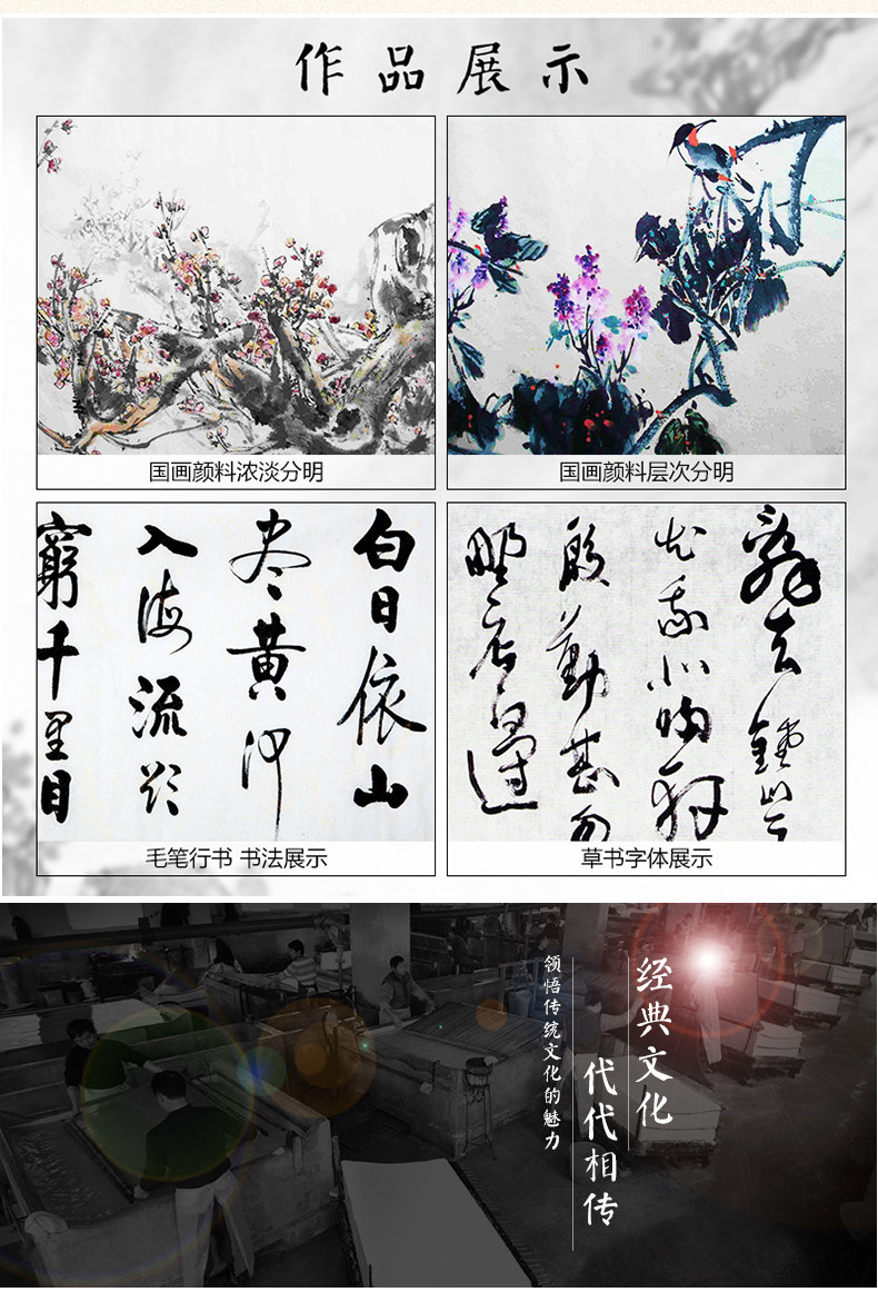 | Paper Format | Creation-Grade Thickened Calligraphy-Specific Raw Announcement (Produced in 2015),Creation-Grade Thickened Raw Xuan for Traditional Chinese Painting (Produced in 2015),Creation-Grade Thickened Half-Cooked Rice Paper (Produced in 2015),Creative Grade Thickened Cooked Rice Paper (Produced in 2019) |