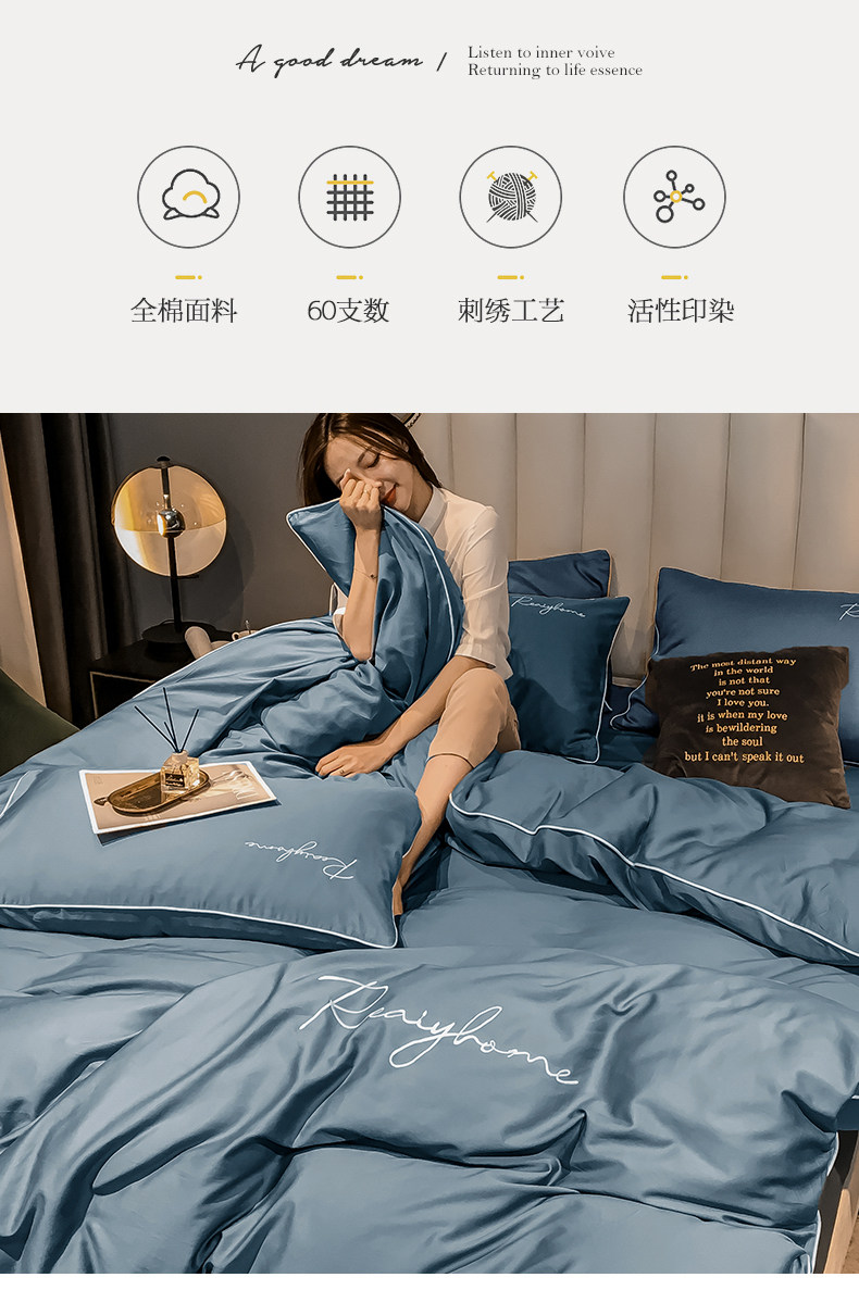Light Luxury 60-Count Four-Piece Bedding Set, Pure Cotton, 2025 New Model, High-End Feel, Master Bedroom Duvet Cover, Bed Sheet, Bedding Set Three