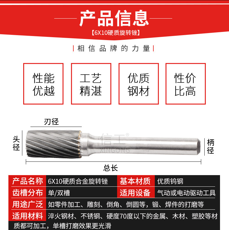 | Color Classification | Xingong - the Premier Rotary Burr Brand.,Five-Star Store of the Year ~ Please Feel Free to Buy,Axe1020M6 Double Slot [6*10mm],Cx1020M6 Double Slot [6*10mm],Dx1009M6 Double Slot [6*10mm],Ex1016M6 Double Slot [6*10mm],Fx1020M6 Double Slot [6*10mm],Gx1020M6 Double Slot [6*10mm],Hx1025M6 Double Slot [6*10mm],Lx1025M6 Double Slot [6*10mm],Mx1020M6 Double Slot [6*10mm],Nx1005M6 Double Slot [6*10mm],6X10 Double Slot Set [10 Pieces],The Following Is a Single Slot (Applicable to Steel/Iron/Copper and Other Hard Metal Materials),A1020M6 Single Slot [6*10mm],C1020M6 Single Slot [6*10mm],D1009M6 Single Slot [6*10mm],E1016M6 Single Slot [6*10mm],F1020M6 Single Slot [6*10mm],G1020M6 Single Slot [6*10mm],H1025M6 Single Slot [6*10mm],J1008M6 Single Slot [6*10mm],K1005M6 Single Slot [6*10mm],L1025M6 Single Slot [6*10mm],M1020M6 Single Slot [6*10mm],N1005M6 Single Slot [6*10mm],6X10 Single Slot Set [10 Pieces] |