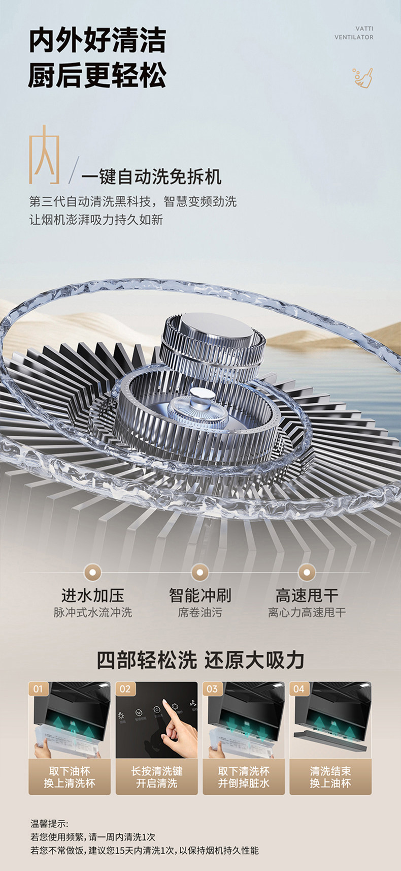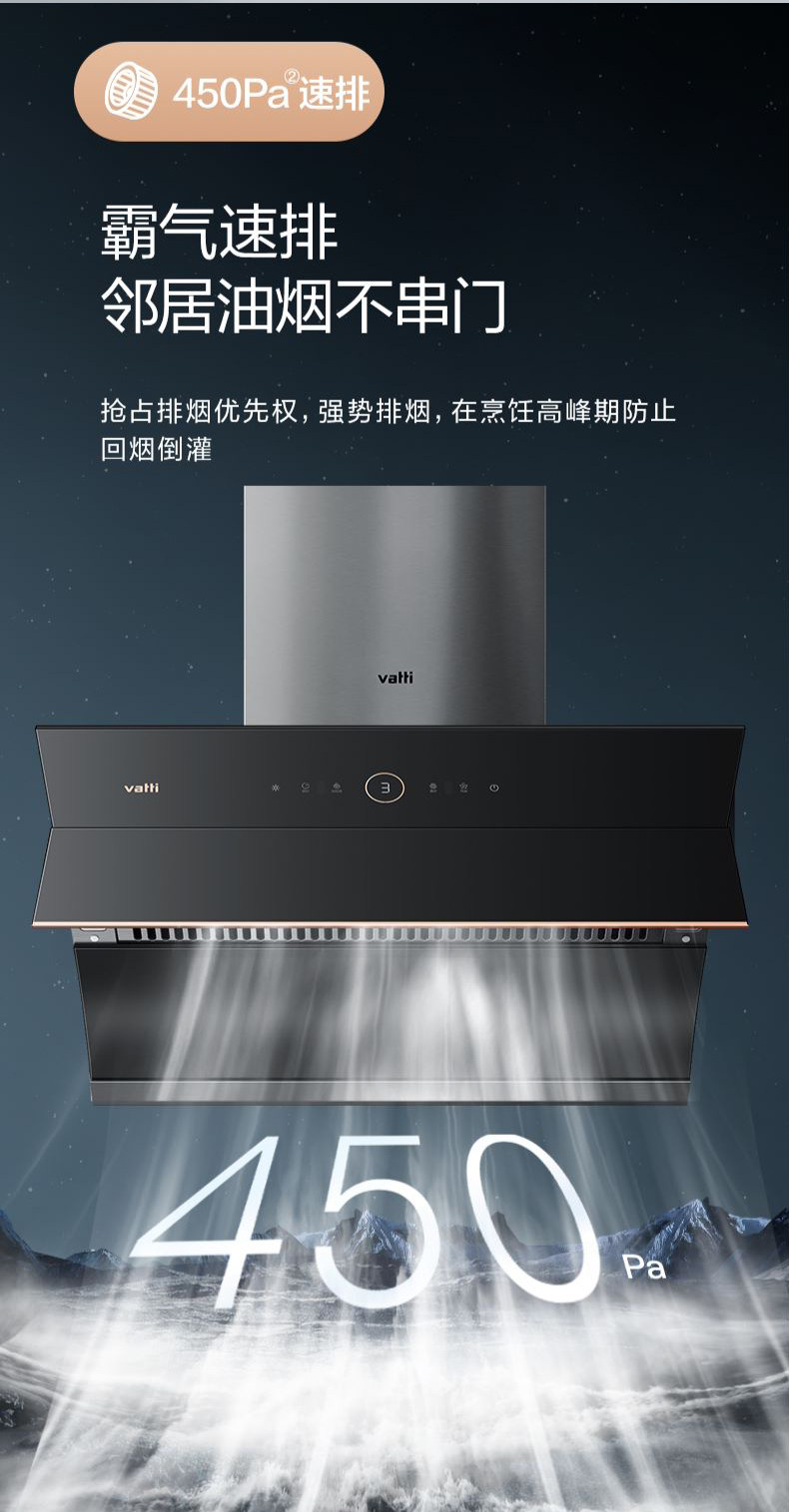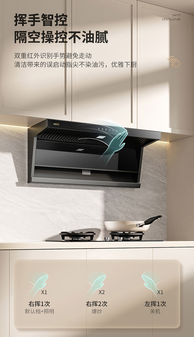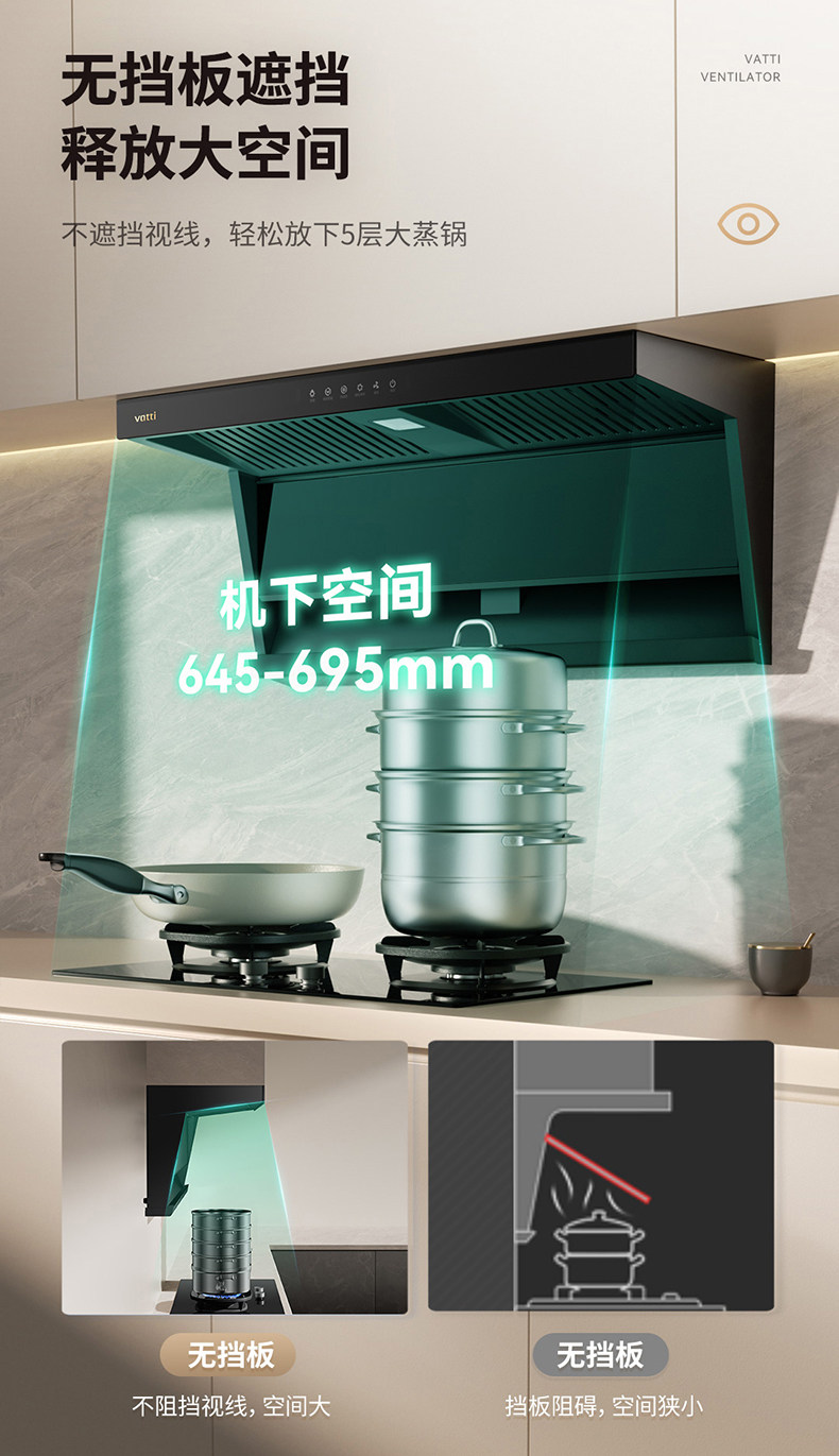 Vatti Range Hood with Automatic Cleaning, Strong Suction, Small Size, Household Kitchen Side-Draft Range Hood, Gas Stove Package, Flagship Store