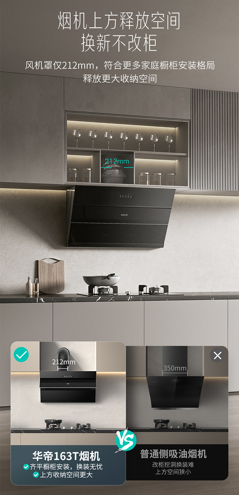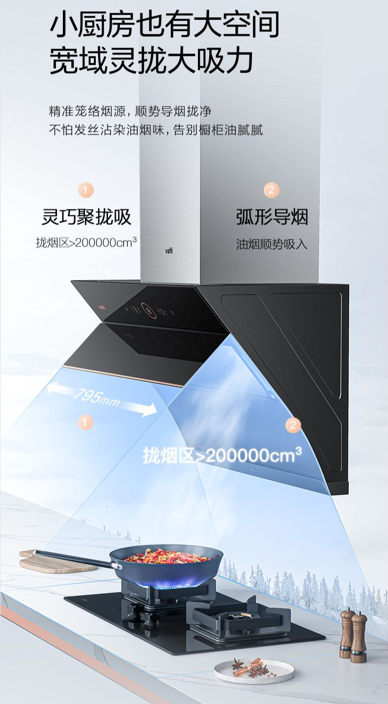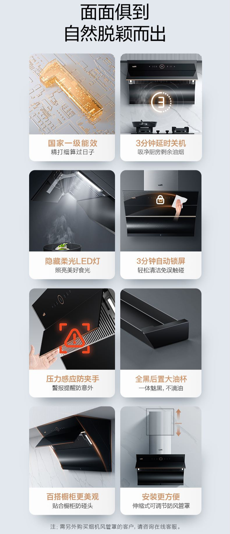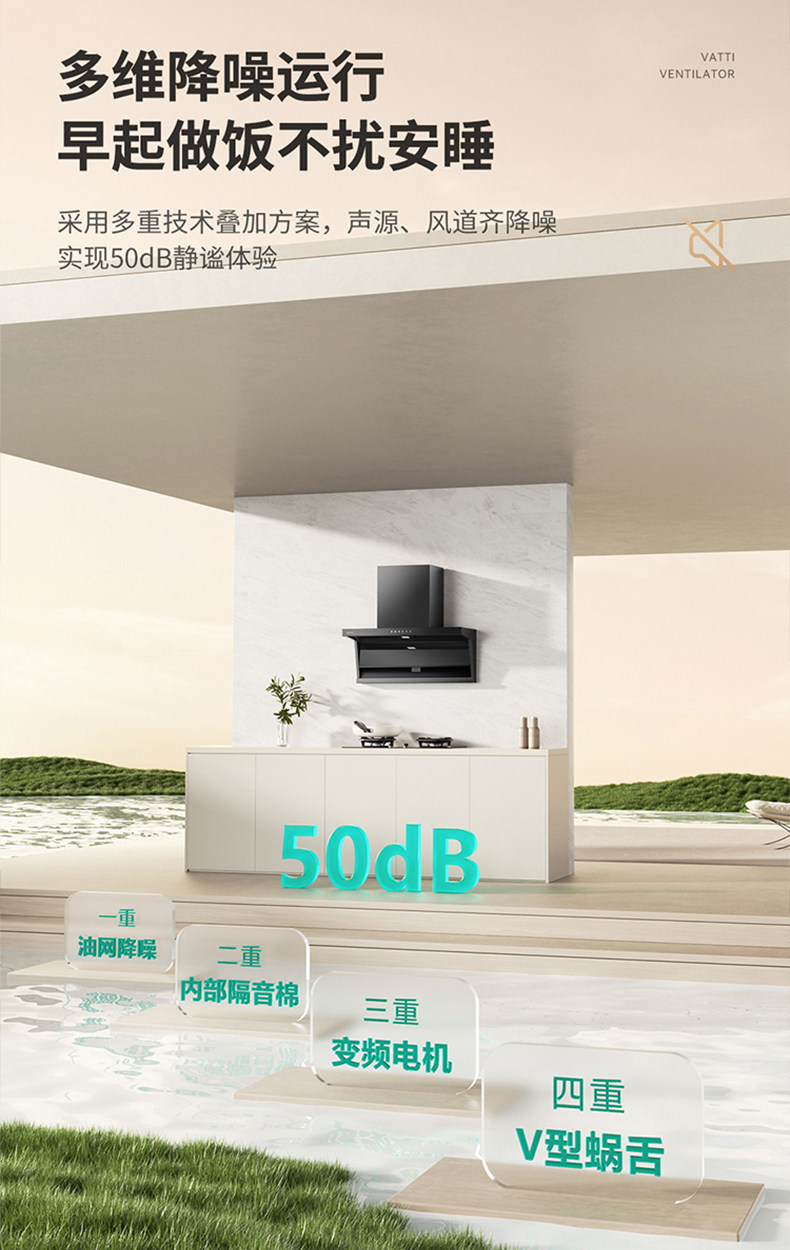 Vatti Range Hood with Automatic Cleaning, Strong Suction, Small Size, Household Kitchen Side-Draft Range Hood, Gas Stove Package, Flagship Store