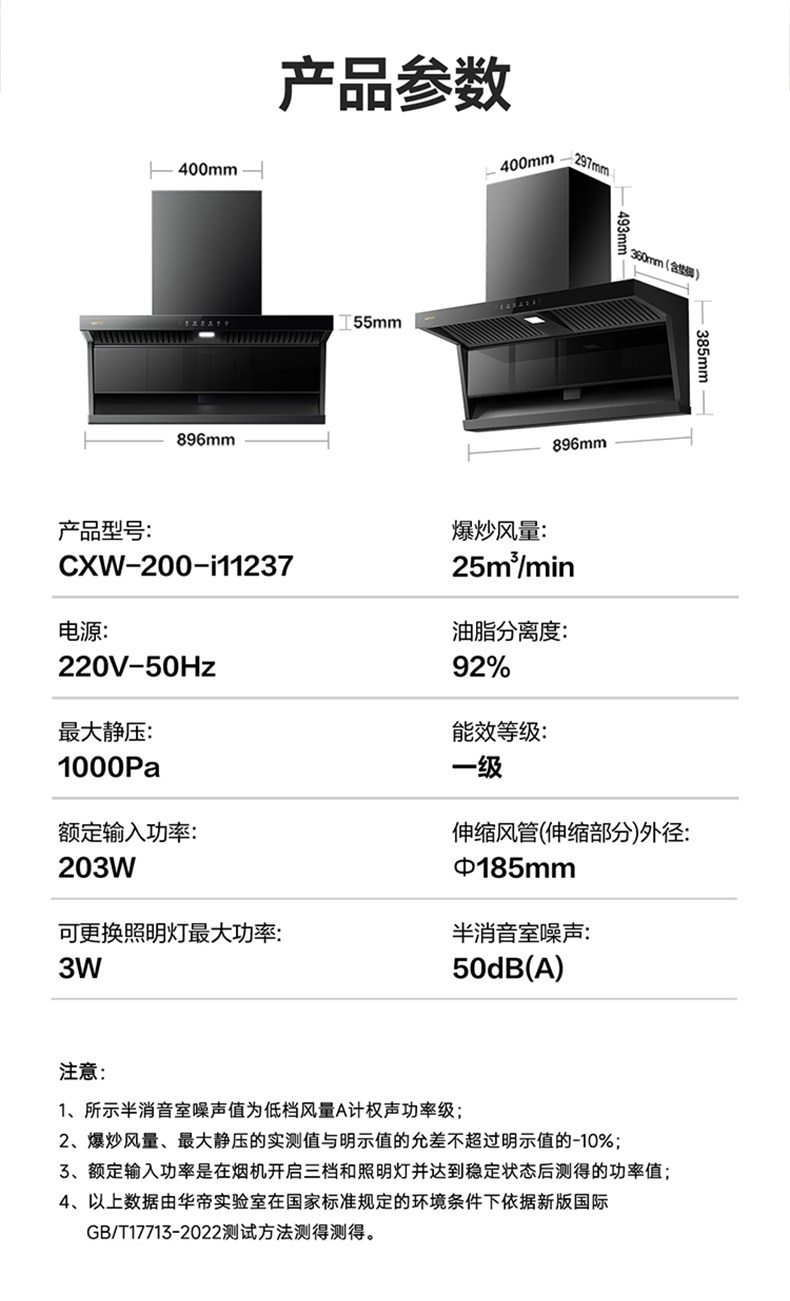 | Range Hood Exhaust Volume | 22 M³/Min,23 Cubic Meters/Minute,25 M³/Min |