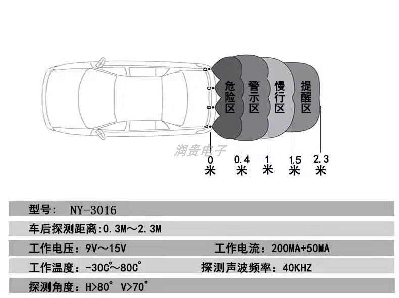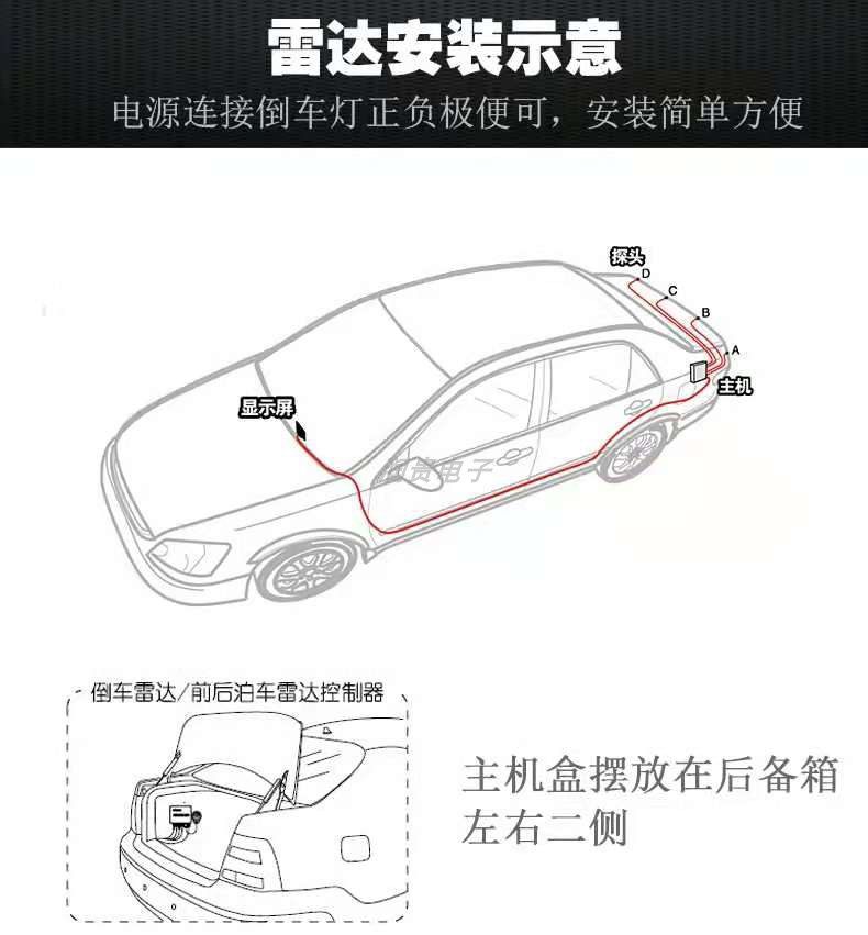 Universal Reversing Radar with Real Voice Broadcast, Distance Indicator, Dual-Core, 4 Sensors, Car Buzzer, Crescent Screen, 12V