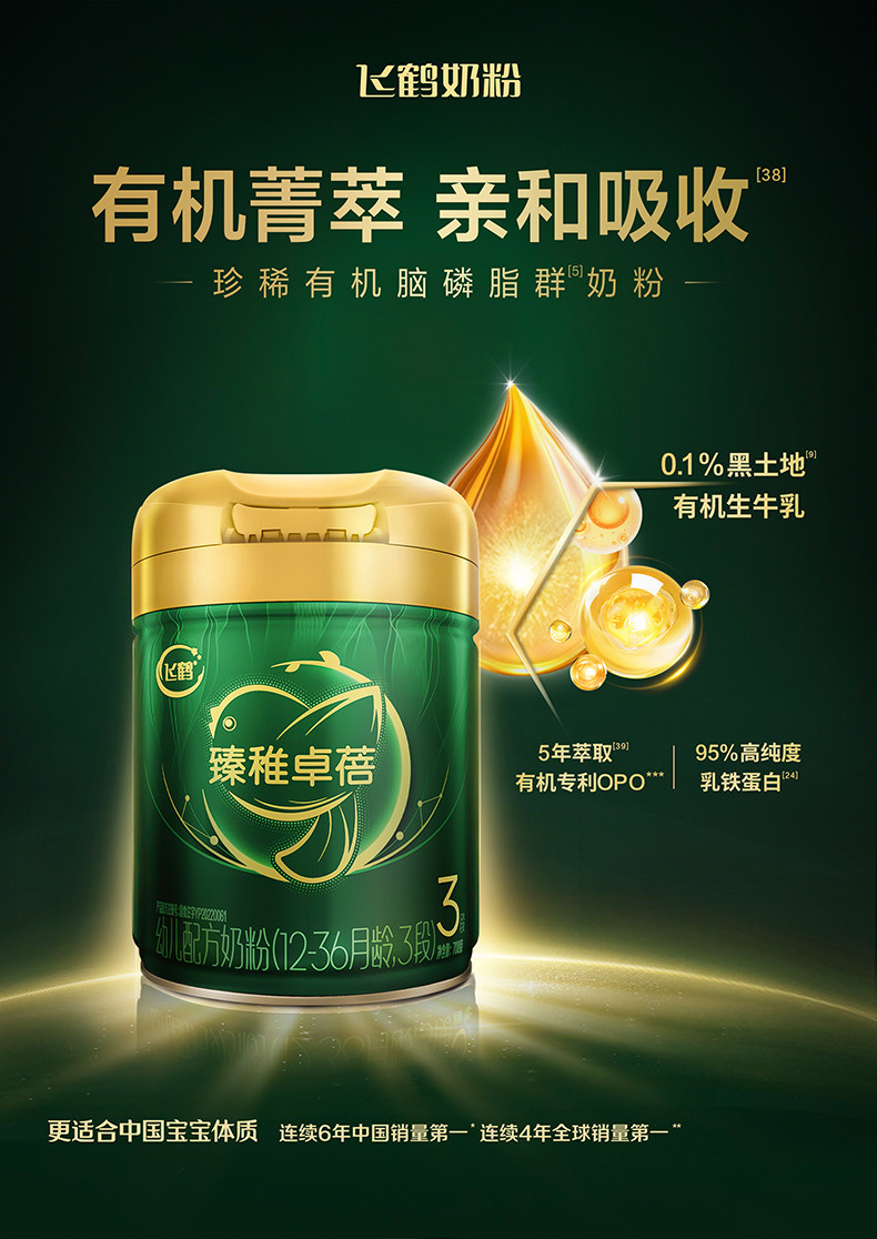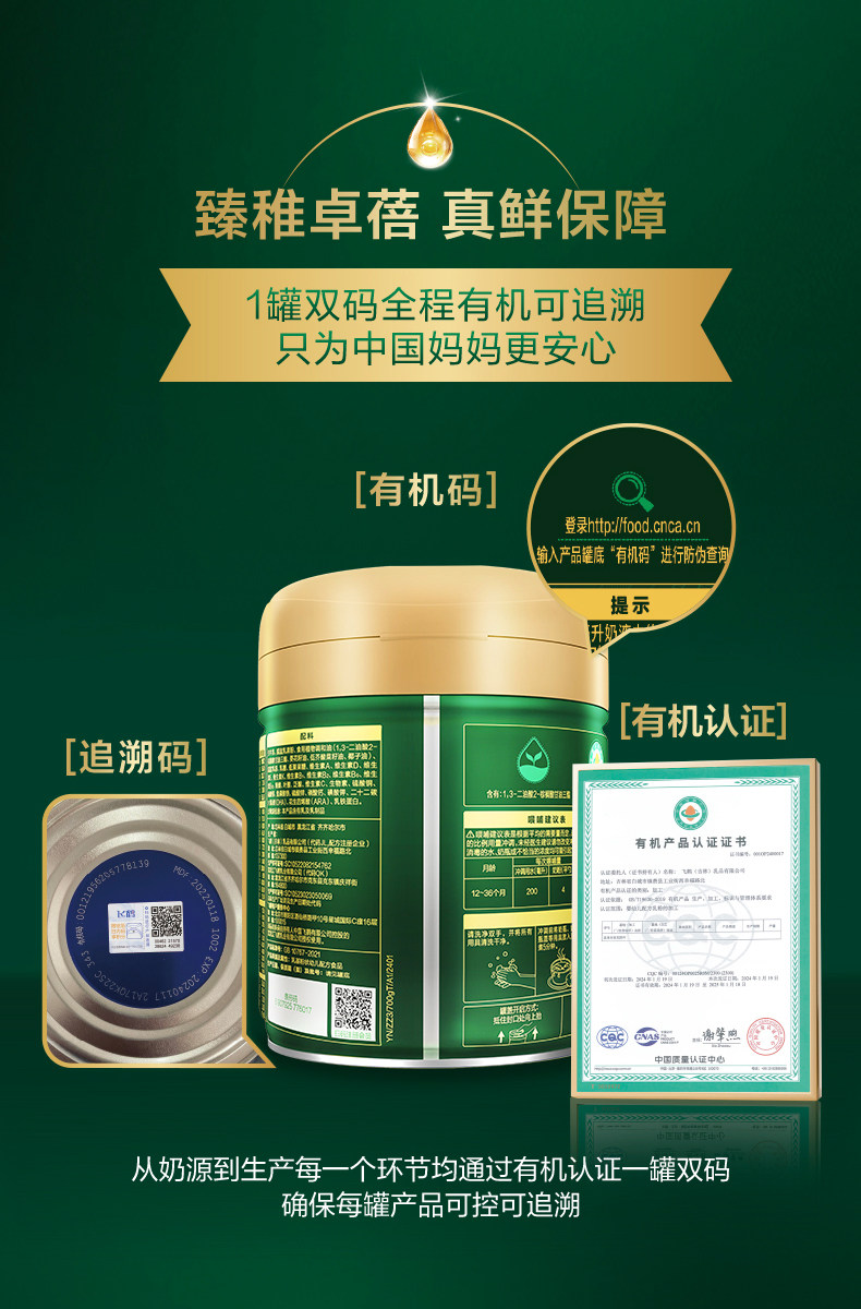 [Official Genuine Product] Feihe Zhenzhi Zhuobei Organic Stage 3 Infant Milk Powder 700g*6 Cans