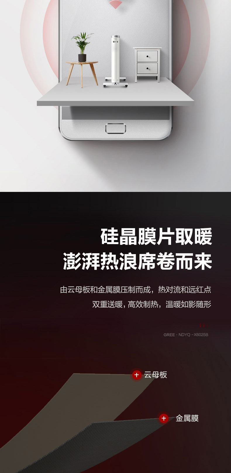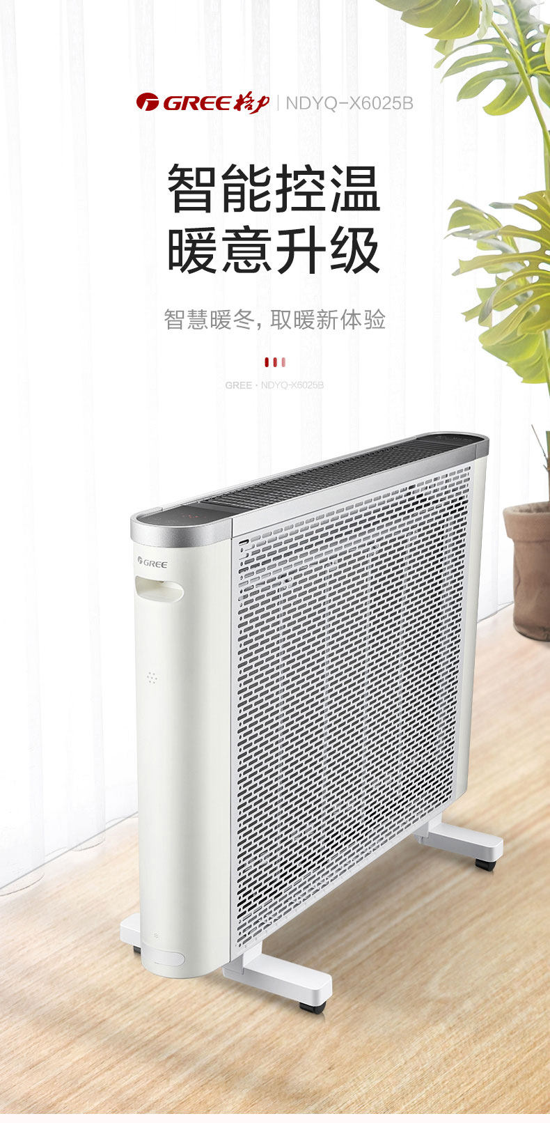 Gree Electric Heater for Home Bedroom, Quiet Electric Heater with Constant Temperature and Humidification, Energy-Saving Electric Heating Film, Remote Control Heater