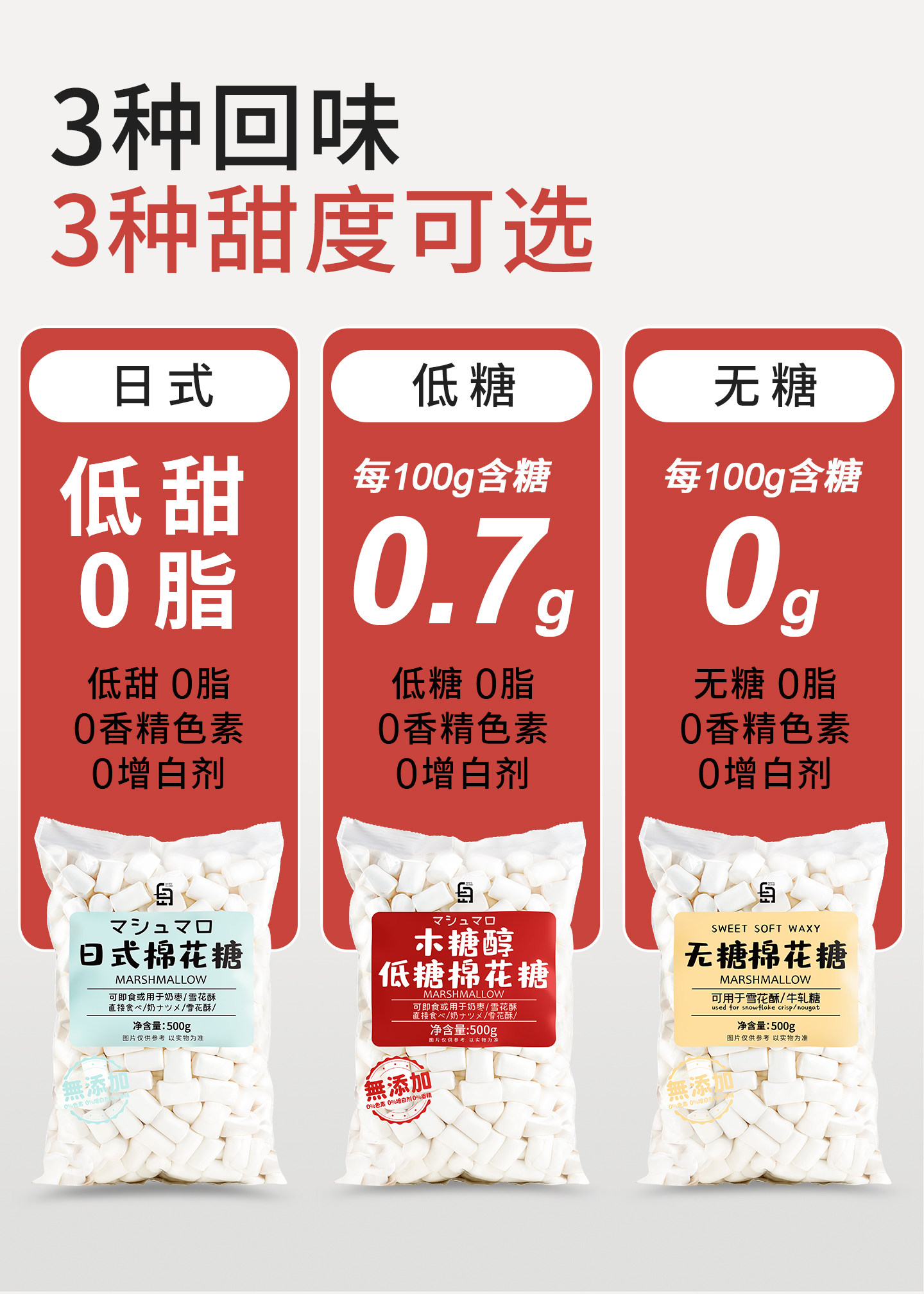 | Taste | [Selected for Multiple Tmall Lists] ✅ Customer Repurchase Is Truly Good.,[Low Sugar and 0 Fat] White Island Marshmallow 500g,[Low Sugar and 0 Fat] White Island Marshmallow 500g*2,[Low Sugar and 0 Fat] White Island Marshmallow 500g*3,[5 Packs of Great Value] White Island Low-Sweet Marshmallows 500g*5,[Upgraded Recipe] White Island Sugar-Free Marshmallows 500g,[Upgraded Formula] White Island Sucrose-Free Marshmallows 500g*2,[Low Sugar and 0 Fat] Xylitol Marshmallow 500g,[Low Sugar and 0 Fat] Xylitol Marshmallow 500g*2,[Sugar-Free and 0 Fat] Sugar-Free Marshmallows 500g,[Sugar-Free and 0 Fat] Sugar-Free Marshmallows 500g*2,[Sugar-Free and 0 Fat] Sugar-Free Marshmallows 500g*3,[Low Sugar and 0 Fat] Xylitol Marshmallows 500g*5,[Sugar-Free and 0 Fat] Sugar-Free Marshmallows 500g*5,[Wholesale Pack] White Island Low Sweet Marshmallows 500g*10,Marshmallows 500g + Snowflake Cookies 500g,【Cranberry】Snowflake Crispy Set,【Strawberry Crisp Nuts】Snowflake Crisp Set,Snowflake Crisp Ingredients: Xiaoqifu Biscuits 500g,Snowflake Cake Ingredients: 500g Dried Cranberries,Snowflake Crisp Ingredients: Daily Nuts 100g,Snowflake Crisp Ingredients: Freeze-Dried Strawberry Crisp 100g,Snowflake Crisp Matching Ingredients: Dried Figs 50g,White Island Marshmallows 500g [Free 200g Marshmallows],Snowflake Crisp Ingredients: White Island Gold Label Matcha Powder 50G/Can,Snowflake Crisp Ingredients: White Island Earl Grey Tea Powder 100G/Can,Snowflake Crisp Ingredients: White Island Earl Grey Tea Crushed 100G/Can,Snowflake Crisp Ingredients: White Island Purple Sweet Potato Powder 150G/Jar,Snowflake Crisp Ingredients: White Island Cactus Fruit Powder 100G/Jar,Snowflake Crisp Ingredients: White Island Strawberry Powder 150G/Jar,Snowflake Cake Ingredients: 100g Cocoa Powder,【Try It Out in a Small Package】White Island Marshmallows 200g,[Low Sugar and 0 Fat] White Island Marshmallow 500g |