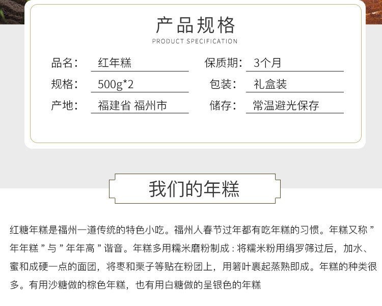 Brown Sugar Rice Cake 1000g Fujian Specialty Traditional Handmade Brown Sugar Glutinous Rice Cake Ready-To-Eat Dessert Gourmet Pastry