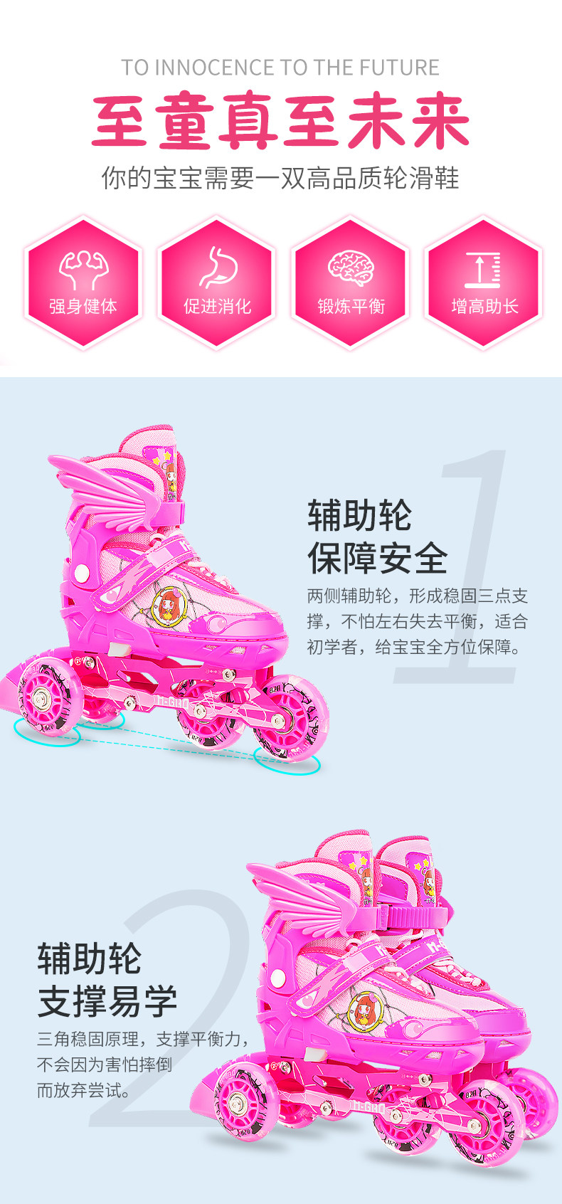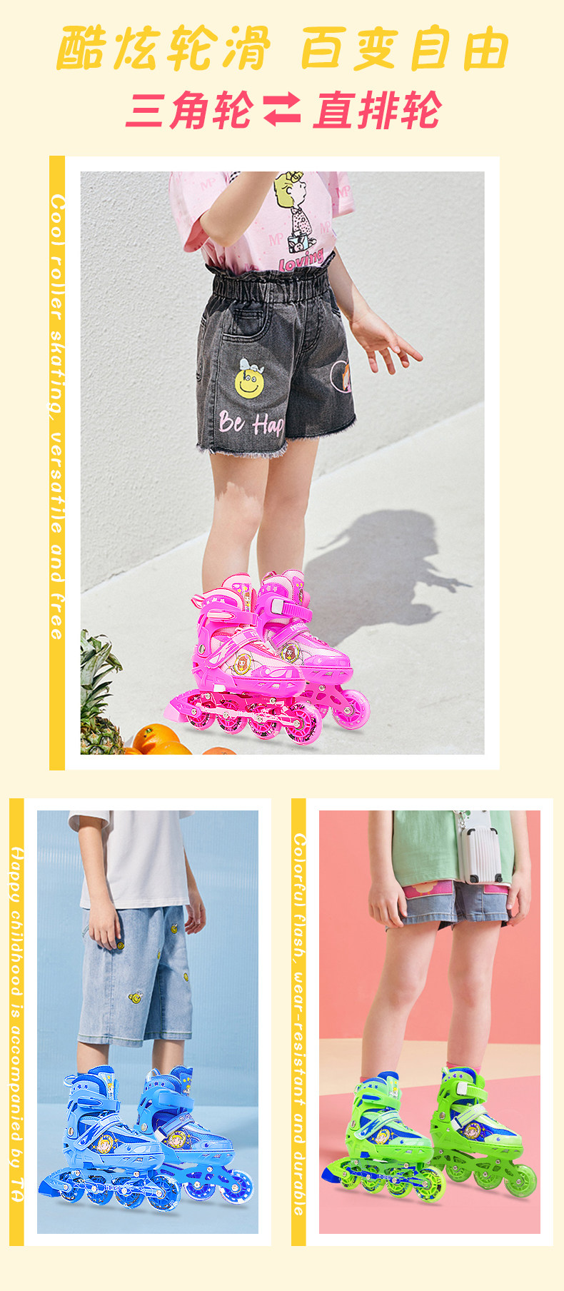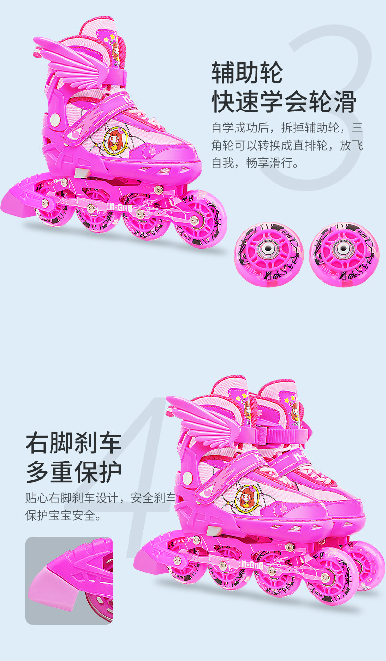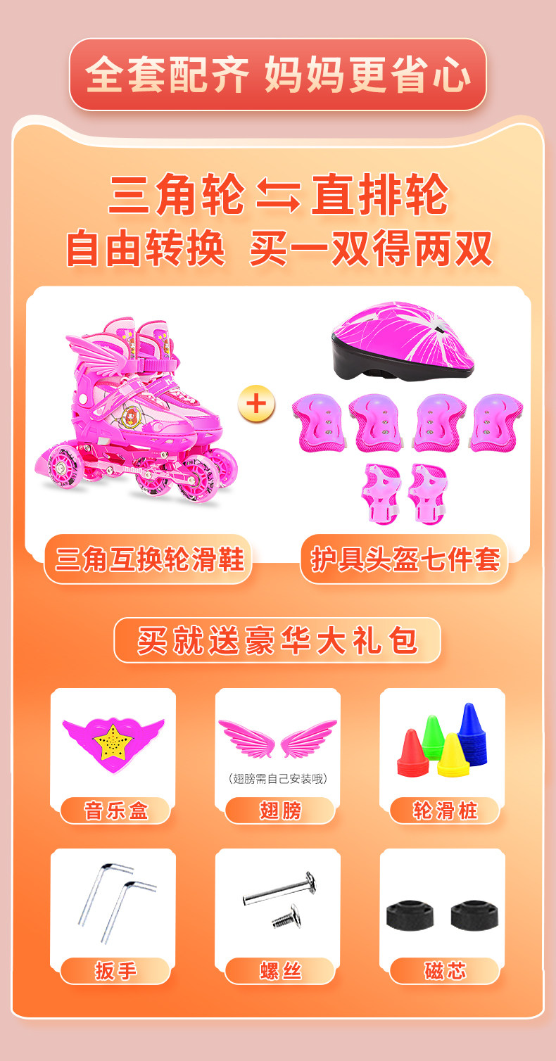 Roller Skates with Triangular Wheels for Children, Beginner Full Set, Inline Skates, Double Row, Adjustable for Girls and Boys