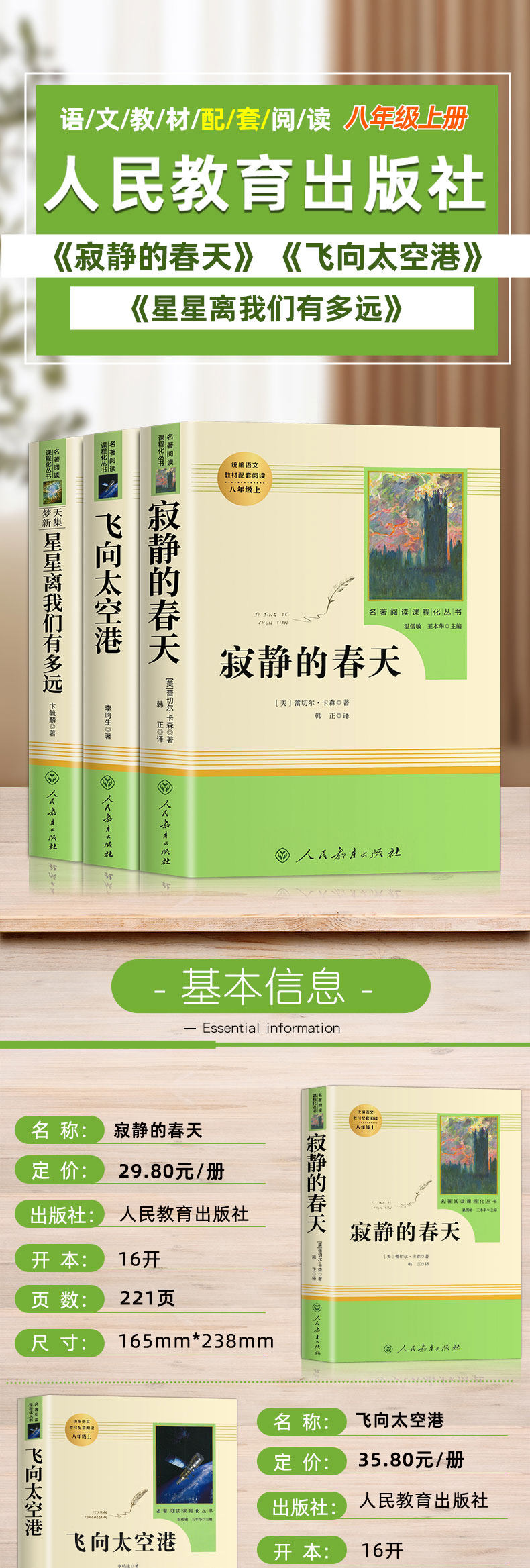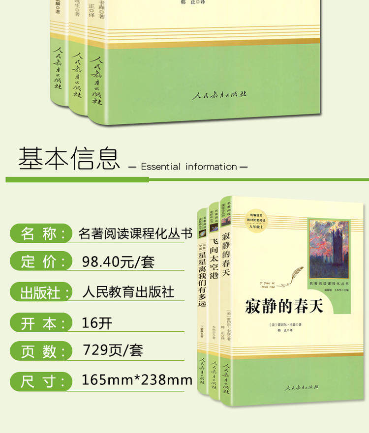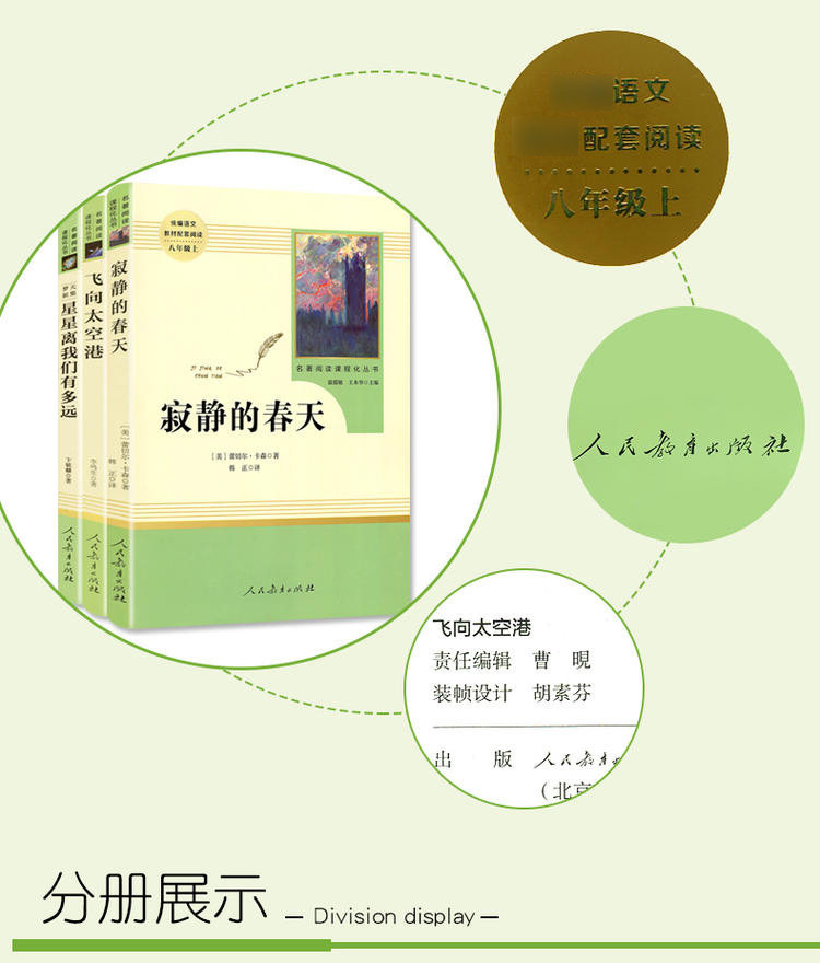 [Grade 8, First Semester] Authentic Edition: Silent Spring, Flying to the Spaceport, How Far Are the Stars from Us, People's Education Press, Chinese Textbook, Classic Reading, Curriculum-Based Series, Extracurricular Reading Books for Middle School Students, Educational Supplement