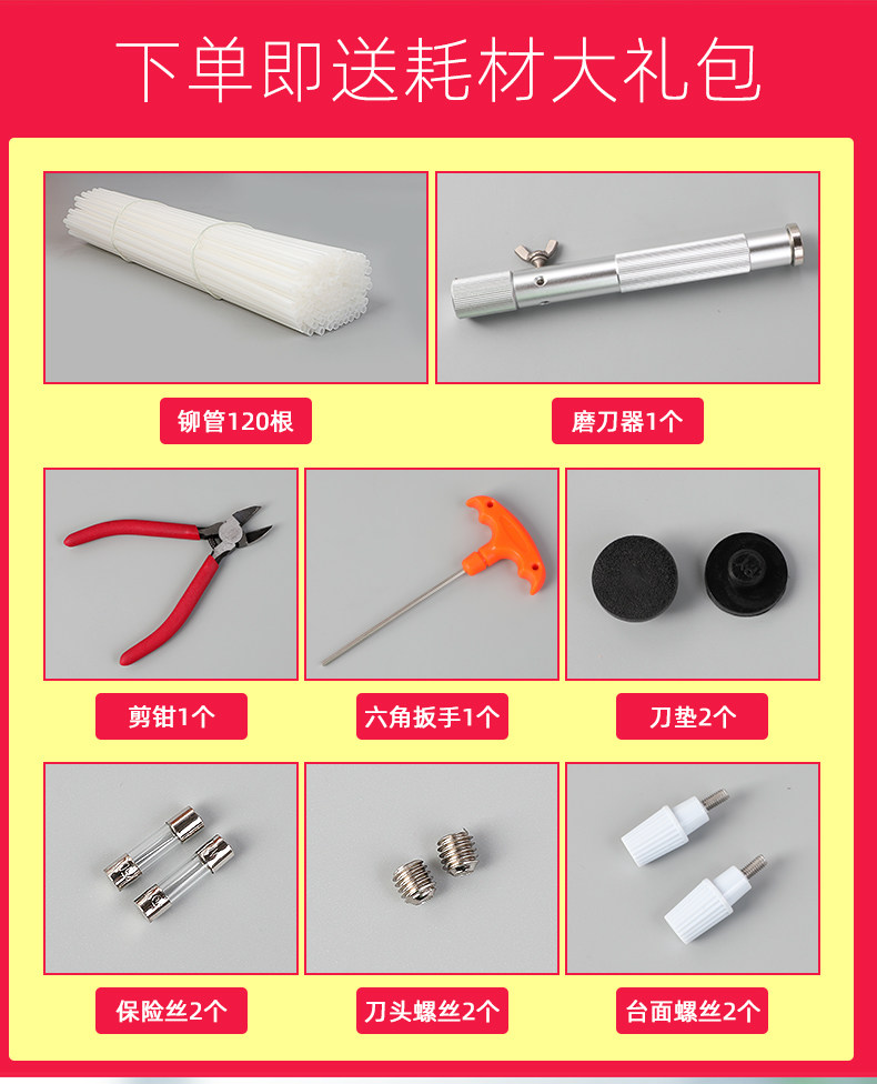 | Color Classification | Do Not Shoot: Parameter Comparison,5cm Laser Positioning Binding Machine. Free: 120 Rivet Tubes + Cutting Pliers + Sharpener,5cm Laser Positioning Binding Machine + Cutter Head Free: 120 Rivet Tubes + Cutting Pliers + Sharpener,5cm Laser Positioning Binding Machine + Cutter Head + 100 Rivet Tubes Free: 120 Rivet Tubes + Cutting Pliers + Sharpener,[Upgraded 6cm Binding]Gift: Consumables Gift Pack,[Upgraded 6cm Binding]Free: Consumable Gift Pack + 100 Rivet Tubes + Drill Bit,[Upgraded 6cm Binding]Free: Consumable Gift Pack + 200 Rivet Tubes + Drill Bit |
