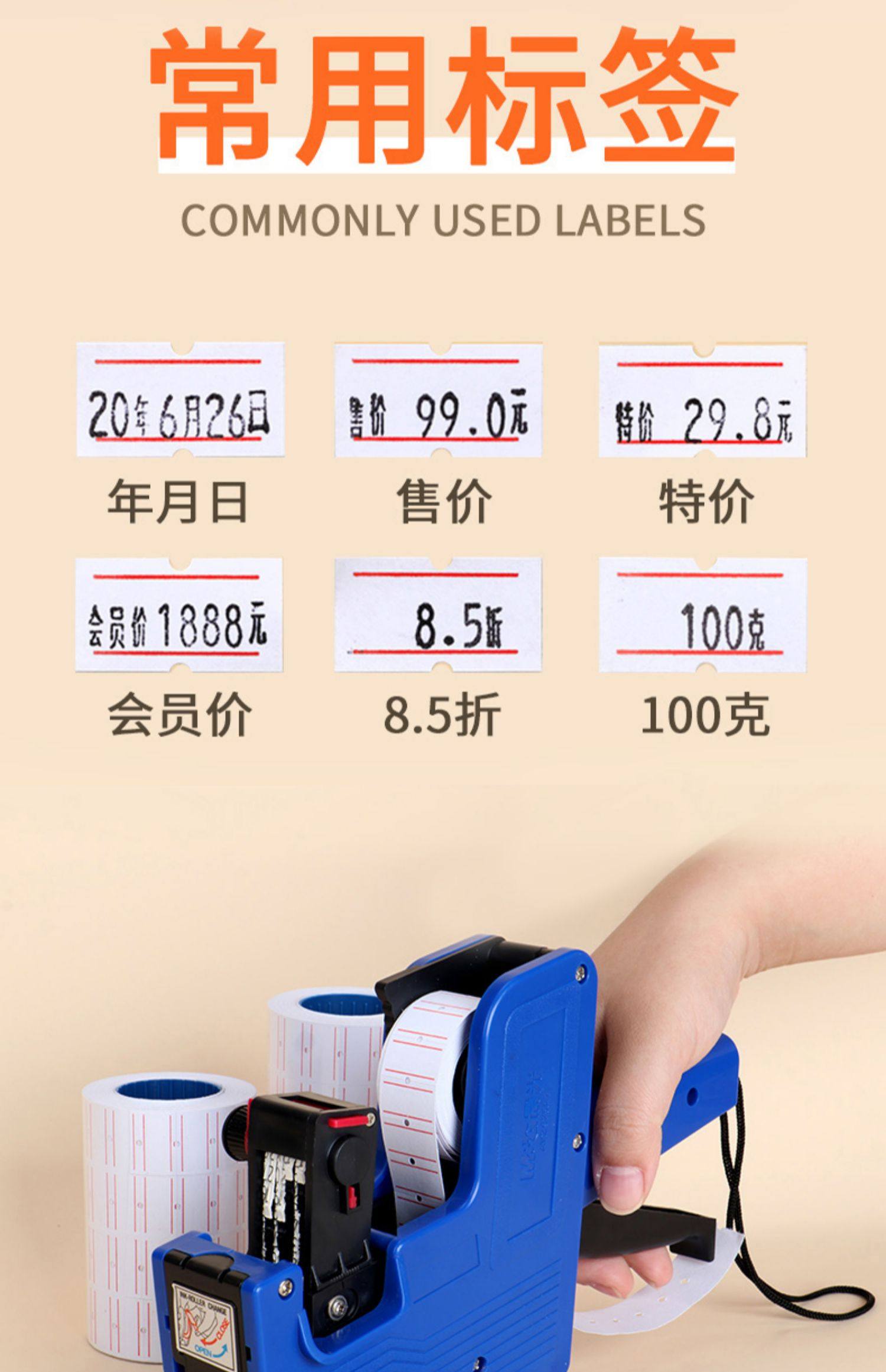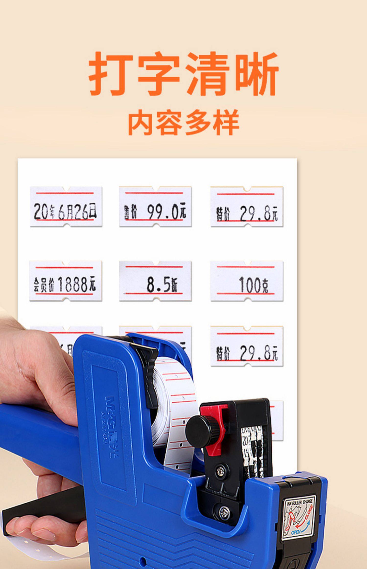 | Color Classification | [Recommended for Convenience Store Use] Regular Model (2 Free Ink Wheels + 4500 Stickers + Ink),Upgraded Model (2 Free Ink Wheels + 4500 Stickers + Ink),[Recommended for Supermarket Use] Regular Model (3 Ink Wheels + 9,000 Labels + Ink),Regular Model (2 Ink Wheels + 1 Roll of Price Paper),Regular Style (2 Free Ink Wheels + 4500 Labels),Regular Model (3 Free Ink Wheels + 4500 Labels + Ink),Regular Style (2 Free Ink Wheels + 9000 Stickers),Regular Model (2 Free Ink Wheels + 9000 Stickers + Ink),Regular Model + 2 Bottles of Ink (3 Ink Wheels + 13,500 Labels Included),Upgraded Model (2 Free Ink Wheels + 4500 Stickers),Upgraded Model (2 Free Ink Wheels + 9000 Stickers),Upgraded Model (2 Free Ink Wheels + 9000 Stickers + Ink),Upgraded Model (3 Free Ink Wheels + 13500 Stickers + Ink),[Consumable Addition] 20 Rolls of Single-Row Label Paper,[Consumable Addition] 40 Rolls of Single-Row Label Paper,[Consumable Addition] Double Row Label Paper 20 Rolls,[Consumable Addition] Double Row Label Paper 40 Rolls,【Two-Piece Set】Single-Row Standard + Calculator,【Two-Piece Set】Single-Row Standard + Highlighter,【Two-Piece Set】Single-Row Standard + Utility Knife,【Two-Piece Set】Single-Row Standard + Gel Pen,[Three-Piece Set] Single Row Regular Style + Calculator + Highlighter,【3-Piece Set】Single-Row Standard + Calculator + Utility Knife,[Three-Piece Set] Single Row Regular Style + Calculator + Gel Pen,[Four-Piece Set] Single Row Regular Style + Calculator + Highlighter + Utility Knife,[Four-Piece Set] Single Row Regular Style + Calculator + Highlighter + Gel Pen,[Recommended for Convenience Store Use] Regular Model (2 Ink Wheels + 4500 Stickers + Ink),Upgraded Model (2 Free Ink Wheels + 4500 Stickers + Ink),[Recommended for Supermarket Use] Regular Model (3 Ink Wheels + 9,000 Labels + Ink),Regular Style (2 Ink Wheels + 1 Roll of Price Paper),Regular Style (2 Free Ink Wheels + 4500 Labels),Regular Model (3 Ink Wheels + 4500 Labels + Ink),Regular Style (2 Free Ink Wheels + 9000 Stickers),Regular Model (2 Free Ink Wheels + 9000 Stickers + Ink),Regular Model + 2 Bottles of Ink (3 Ink Wheels + 13,500 Labels Included),Upgraded Model (2 Free Ink Wheels + 4500 Stickers),Upgraded Model (2 Free Ink Wheels + 9000 Stickers),Upgraded Model (2 Free Ink Wheels + 9000 Stickers + Ink),Upgraded Model (3 Free Ink Wheels + 13500 Stickers + Ink),[Consumable Addition] 20 Rolls of Single-Row Label Paper,[Consumable Addition] 40 Rolls of Single-Row Label Paper,[Consumable Addition] Double Row Label Paper 20 Rolls,[Consumable Addition] Double Row Label Paper 40 Rolls,【Double-Row Premium Edition】 (Includes 400 Stickers + 2 Ink Wheels),【Double-Row Premium Edition】(Includes 5000 Labels + 1 Ink + 2 Ink Wheels),【Double-Row Premium Edition】 (Includes 10,000 Stickers + 2 Ink Wheels),【Double-Row Premium Edition】 (Includes 15,000 Stickers + 3 Ink Wheels + 1 Bottle of Ink),【Two-Piece Set】 Single-Row Standard + Highlighter,【Two-Piece Set】 Single-Row Standard + Utility Knife,【Two-Piece Set】 Single-Row Standard + Gel Pen,[Three-Piece Set] Single Row Regular Style + Calculator + Highlighter,【Four-Piece Set】Single-Row Standard + Calculator + Highlighter + Utility Knife |