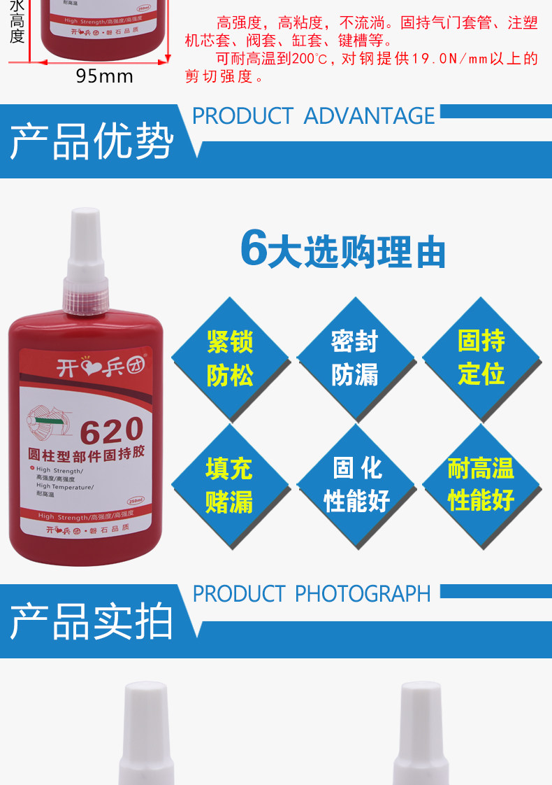 620 Glue 250ml Large Bottle High Strength Heat Resistant High Temperature Resistant Vibration Resistant Cylindrical Parts Parts Fixed Glue Bearing Seal Anaerobic Glue Green