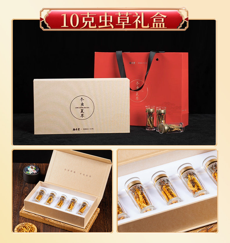 | Package Type | [Hot Style] 3 Pieces/G [10g Pack] [Big Cordyceps King],3 Pieces/G [20g Package, Free Astragalus] [Big Cordyceps King],3 Pieces/G [50g Package, Free American Ginseng] [Big Cordyceps King],3 Pieces/G [20g Crystal Tube] [Big Cordyceps King],4 Pieces/G [10g Package] [First Crop for Personal Use],4 Pieces/G [20g Package, Free Astragalus] [First Crop for Personal Use],4 Roots/Gram [50g Pack, Free American Ginseng] [First Crop for Personal Use],4 Pieces/G [20g Crystal Tube] [First Crop for Personal Use],5 Strands/G [10g Pack] [Selected Grass],5 Sticks/G [20g Package, Free Astragalus] [Selected Grass],5 Roots/Gram [50g Pack, Includes American Ginseng] [Premium Selection],5 Stems/G [20g Crystal Tube] [Premium Wild Herb Selection],2 Sticks/G [10g Package] [Ceiling Level],2 Pieces/G [20g Crystal Tube] [Ceiling Level],0.8G/Stem [100 Stems of Fresh Grass] Frozen and Stored,1.0G/Stem [100 Stems of Fresh Grass] Frozen and Stored,1.2G/Stem [100 Stems of Fresh Grass] Frozen and Stored,10 Grams of Duancao (Grass Clipping),10 Grams of Cordyceps Powder,1 Gram of Large Grass,3 Pieces/G [50g Package],4 Pieces/G [50g Package],5 Sticks/G [50g Package],3 Pieces/G [40g Package] Crystal Tube Gift Box [Big Cordyceps King],3 Pieces/G [Pack of 20 Pieces] Crystal Tube Gift Box [Big Cordyceps King] |