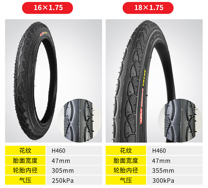 | Color Classification | 12 1/2×2 1/4 [Tire],12 1/2×2 1/4 [Outer Tire + Inner Tube],14×1.75 [Tire],14×1.75 [Outer Tire + Inner Tube],16×1.75 [Tire],16×1.75 [Outer Tire + Inner Tube],18×1.75 [Tire],18×1.75 [Outer Tire + Inner Tube],20×1.75 [Tire H460],20×1.75 [Outer Tire H460+Inner Tube],20×1.75 [Tire H504],20×1.75 [Outer Tire H504 + Inner Tube],22×1.75 [Tire],22×1.75 [Outer Tire + Inner Tube],22×1 3/8 [Tire H428],22×1 3/8 [Outer Tire H428 + Inner Tube] |