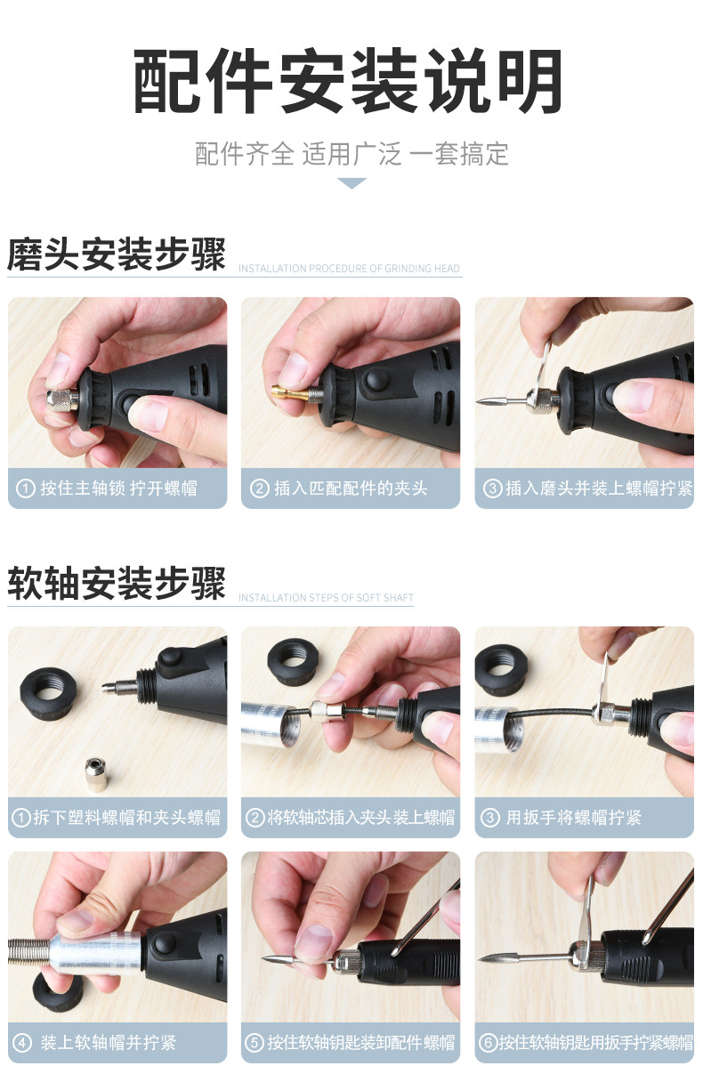 | Color Classification | Luxury Dual Electric Grinder: Standard Official Configuration (Includes Universal Chuck + Twist Drill Bit),Luxury Dual Electric Grinder: Package 1: Stone Carving,Luxury Dual Electric Grinder: Package Two: Wood Carving,Luxury Dual Electric Grinder: Package Three: Universal for Wood and Stone Carving,Luxury Dual Electric Grinder: Package Four: Jade and Stone Carving,Luxury Dual Electric Grinder: Package Five: Wood Carving and Core Carving,Luxury Dual Electric Grinder: Package Six: Comprehensive Universal Upgrade Kit,Luxury Dual Electric Grinder: Package Seven: Comprehensive Universal Deluxe Kit |