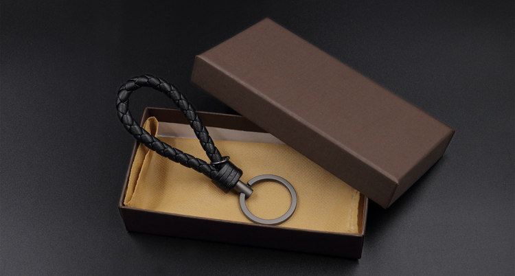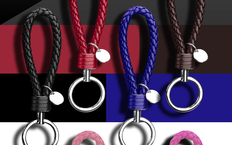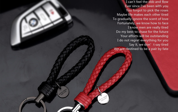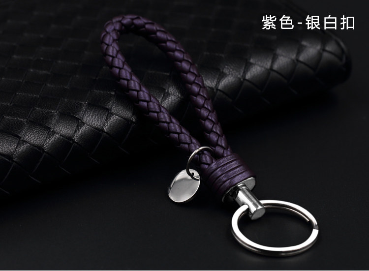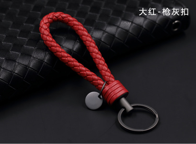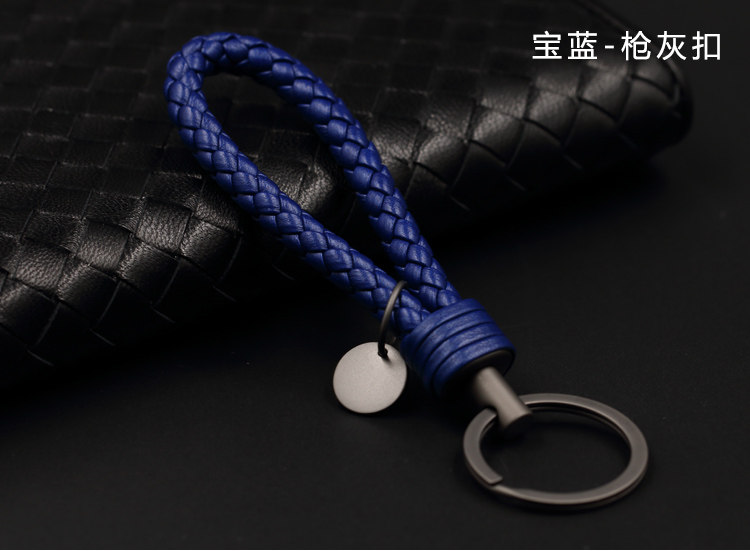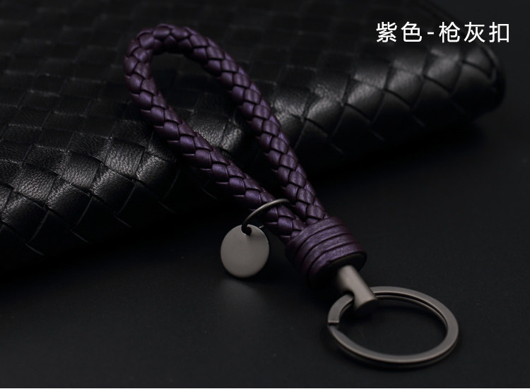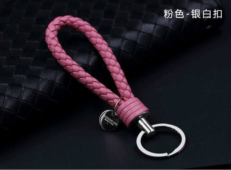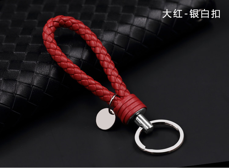 Car Woven Keychain Men's High-End Genuine Leather Car Key Pendant Women's Exquisite Key Chain Ornament Bv Key Ring