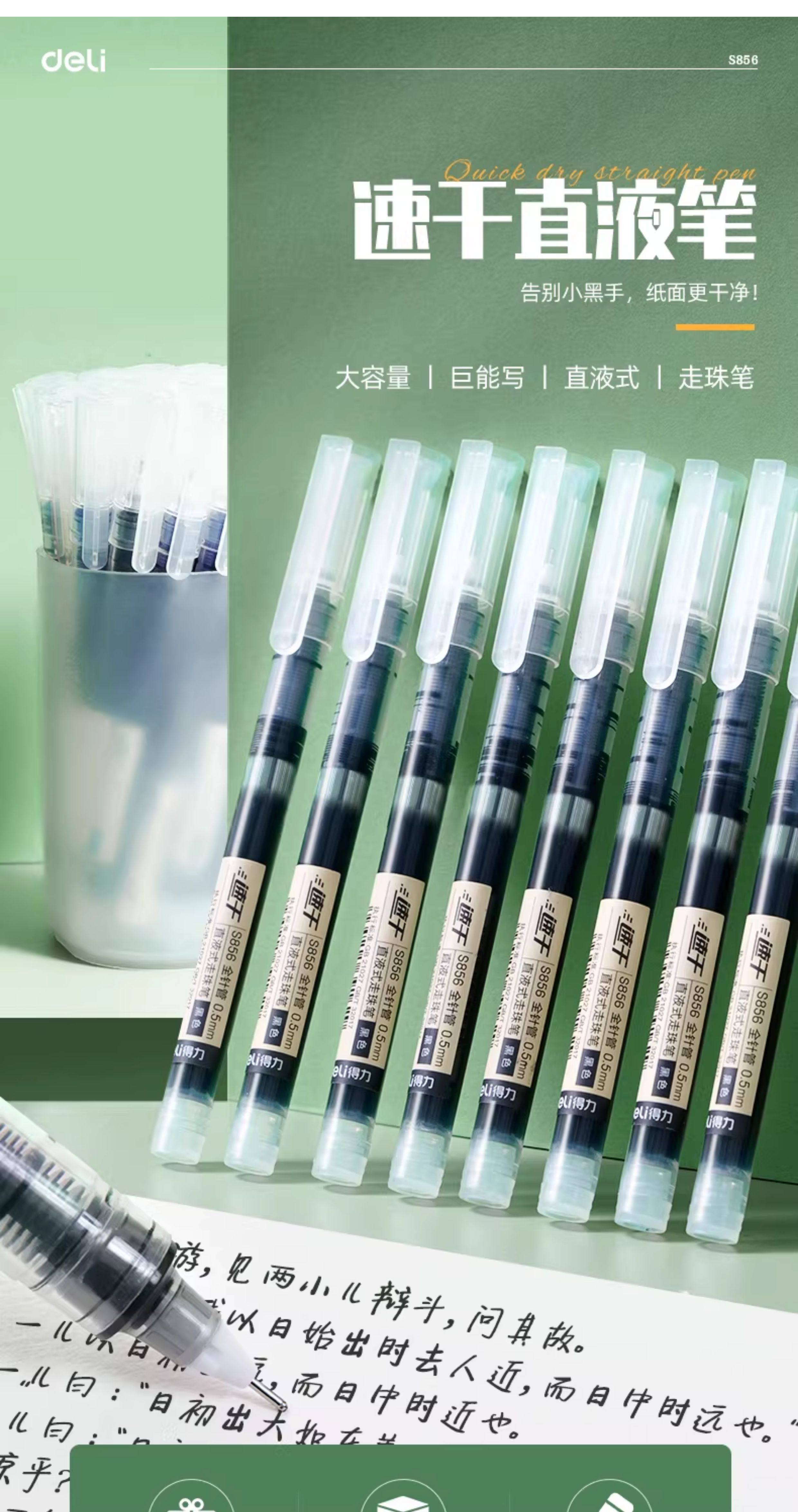 Deli Gel Pen, Liquid Ink Rollerball Pen, Black Pen for Exam Practice, Signature Pen, Exam Use, Teacher and Student Use, Blue and Red Pens, Black Writing Pen, Ballpoint Pen, Water-Based Pen, Quick-Drying Carbon Ink Pen