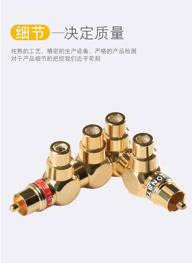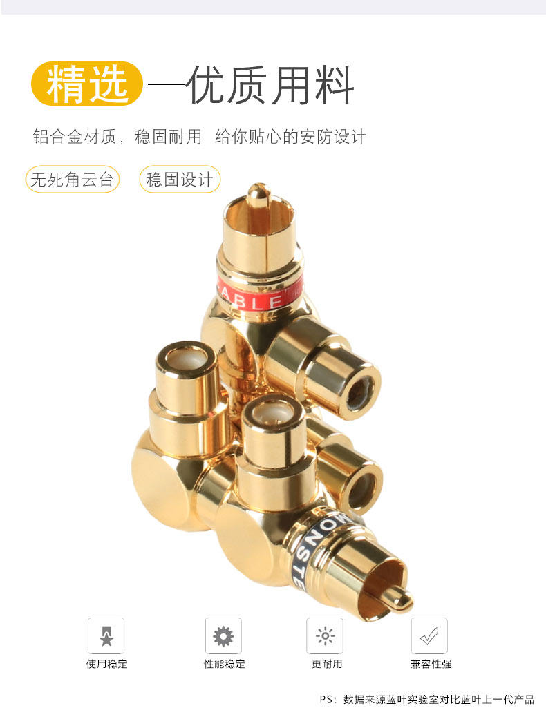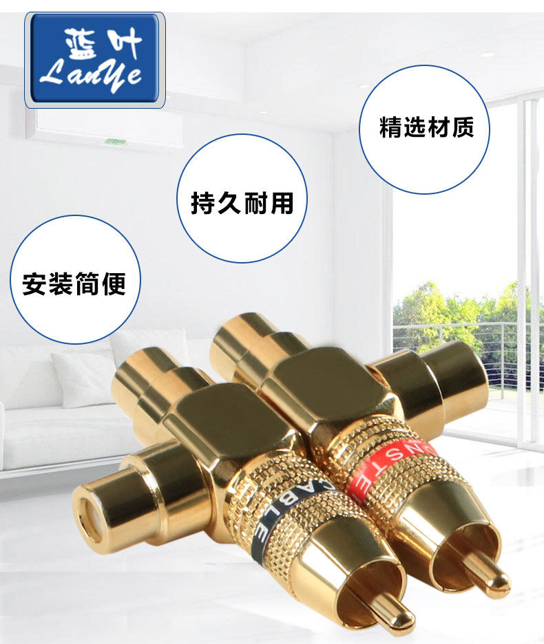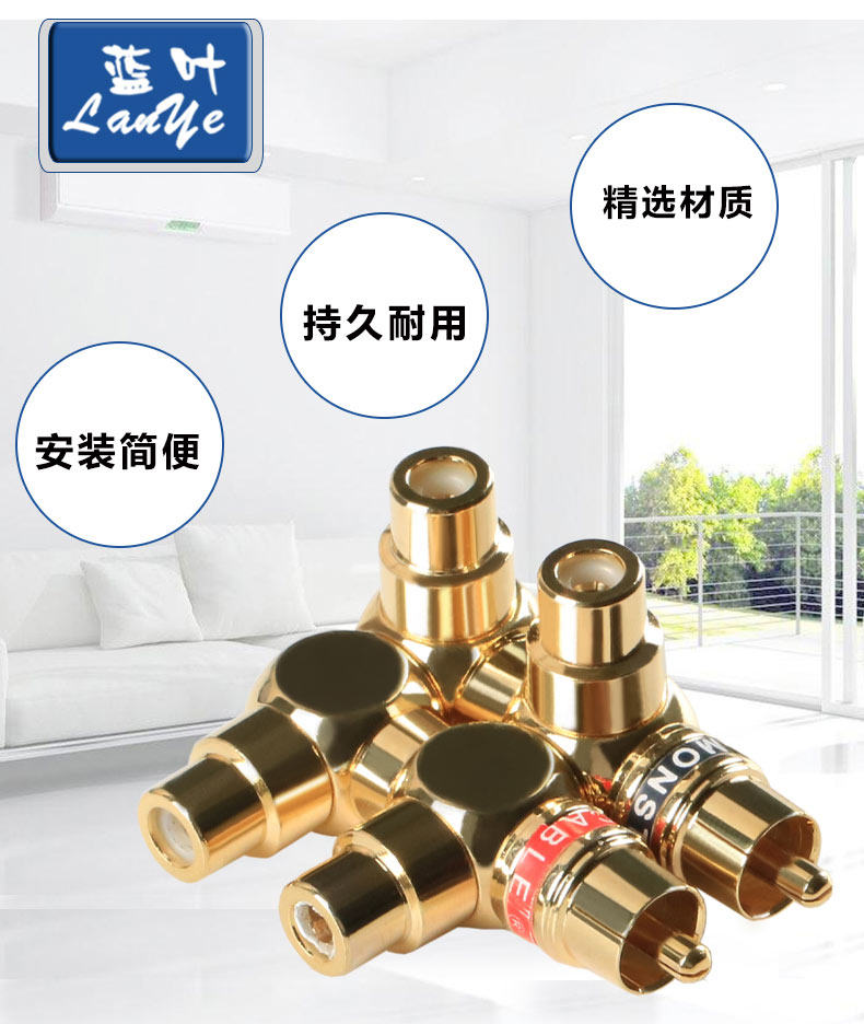 Pure Copper Lotus Three-Way Connector Audio Rca Splitter One Male to Two Female Av Lotus Splitter Adapter