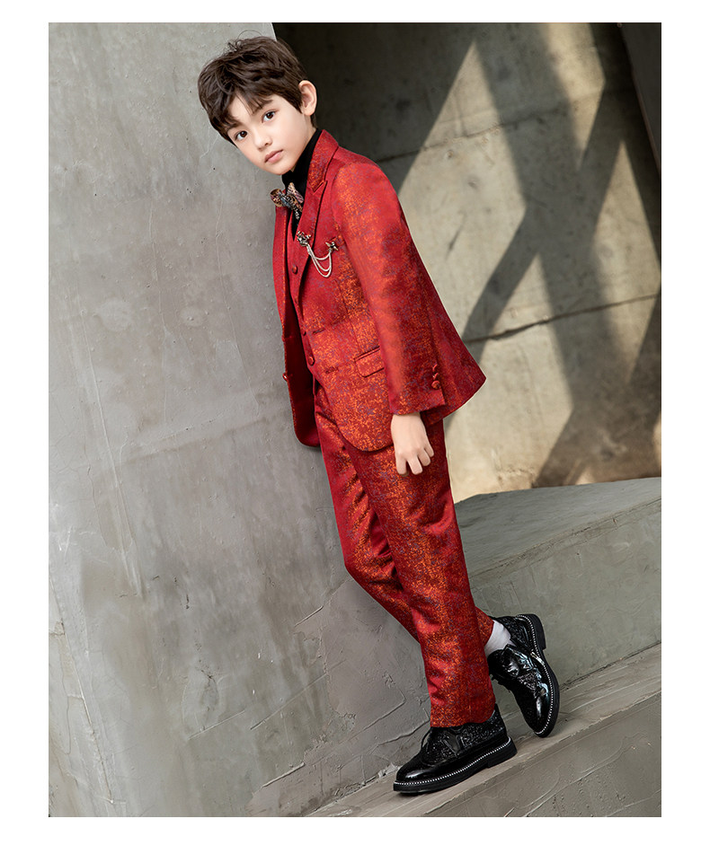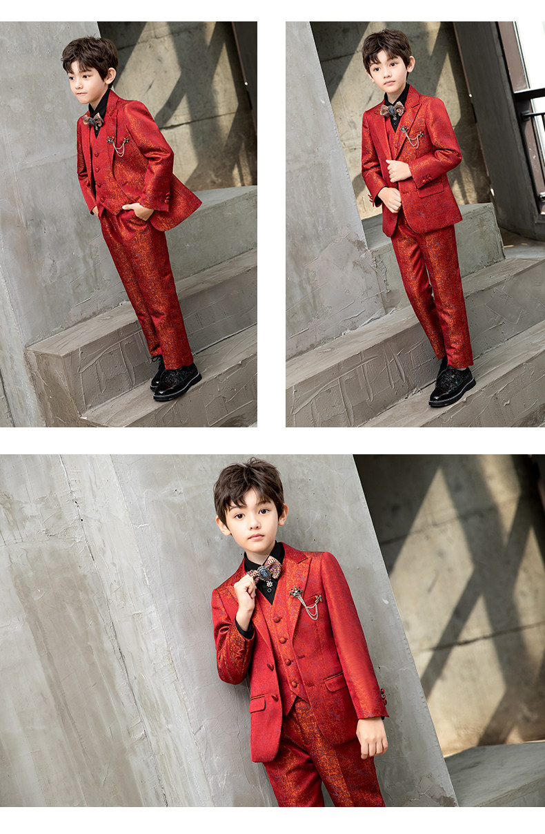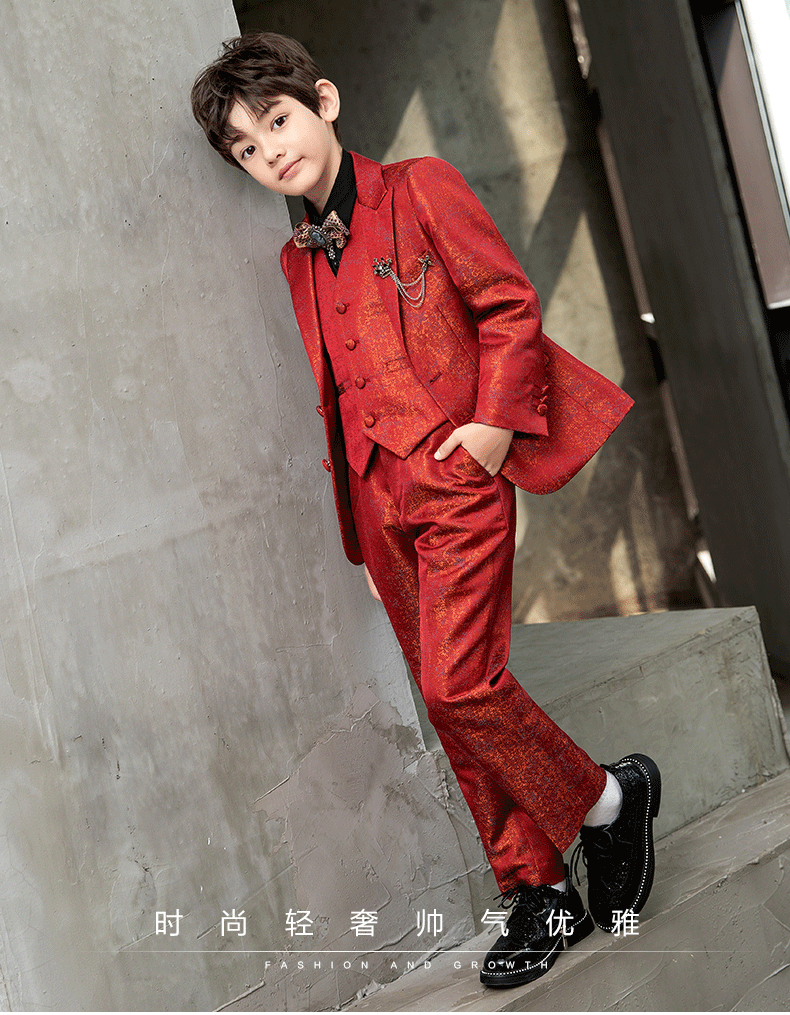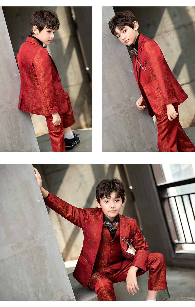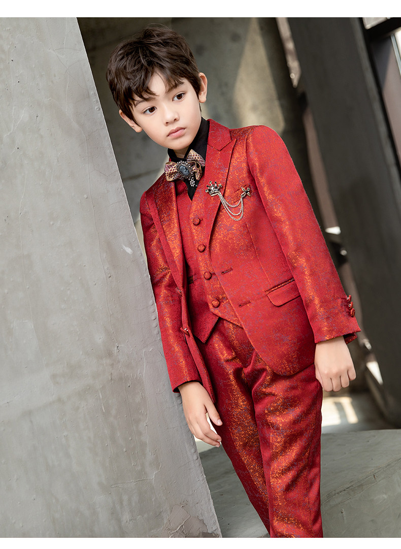 Boy's Suit Set, Flower Boy Red Stylish British-Style Small Suit, Children's Runway Outfit, Host Piano Performance Attire