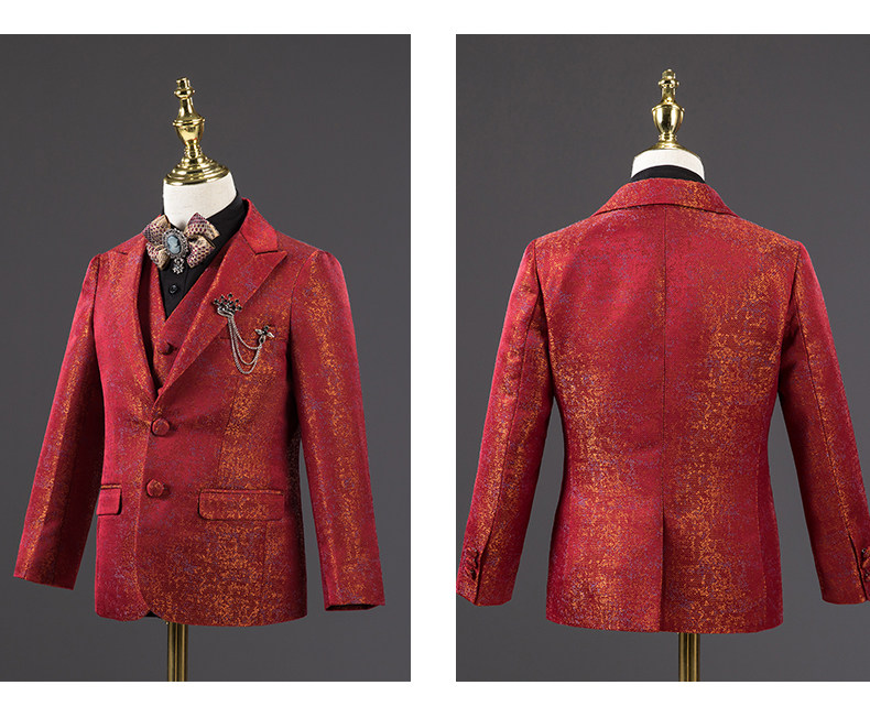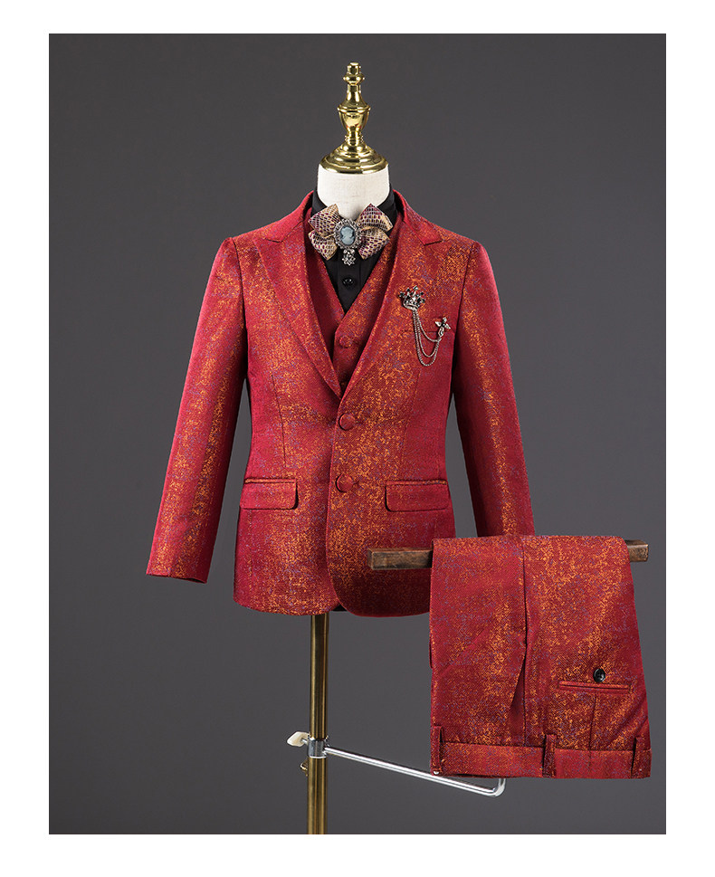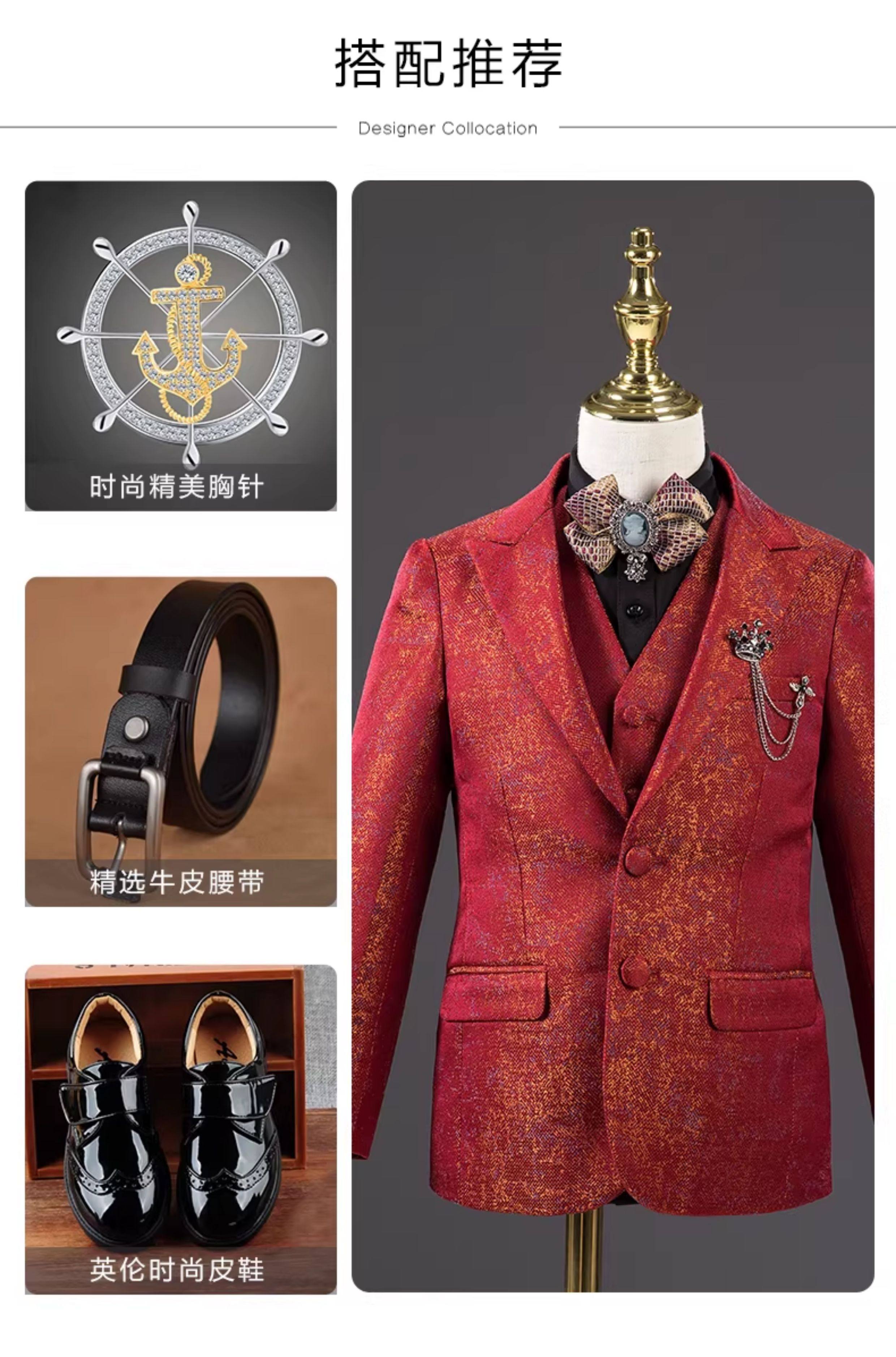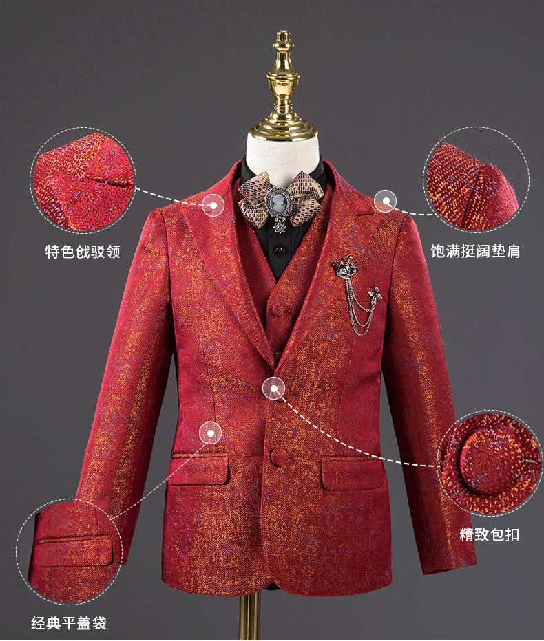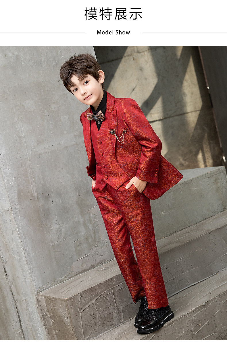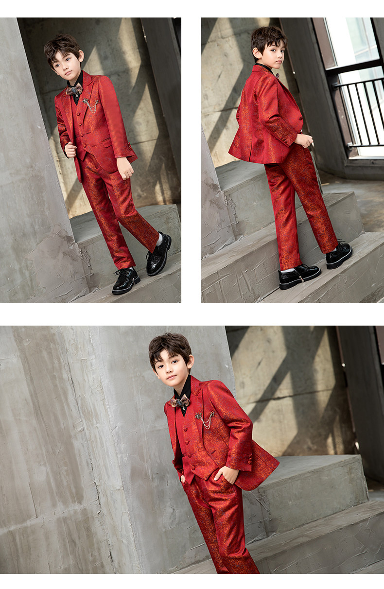 Boy's Suit Set, Flower Boy Red Stylish British-Style Small Suit, Children's Runway Outfit, Host Piano Performance Attire