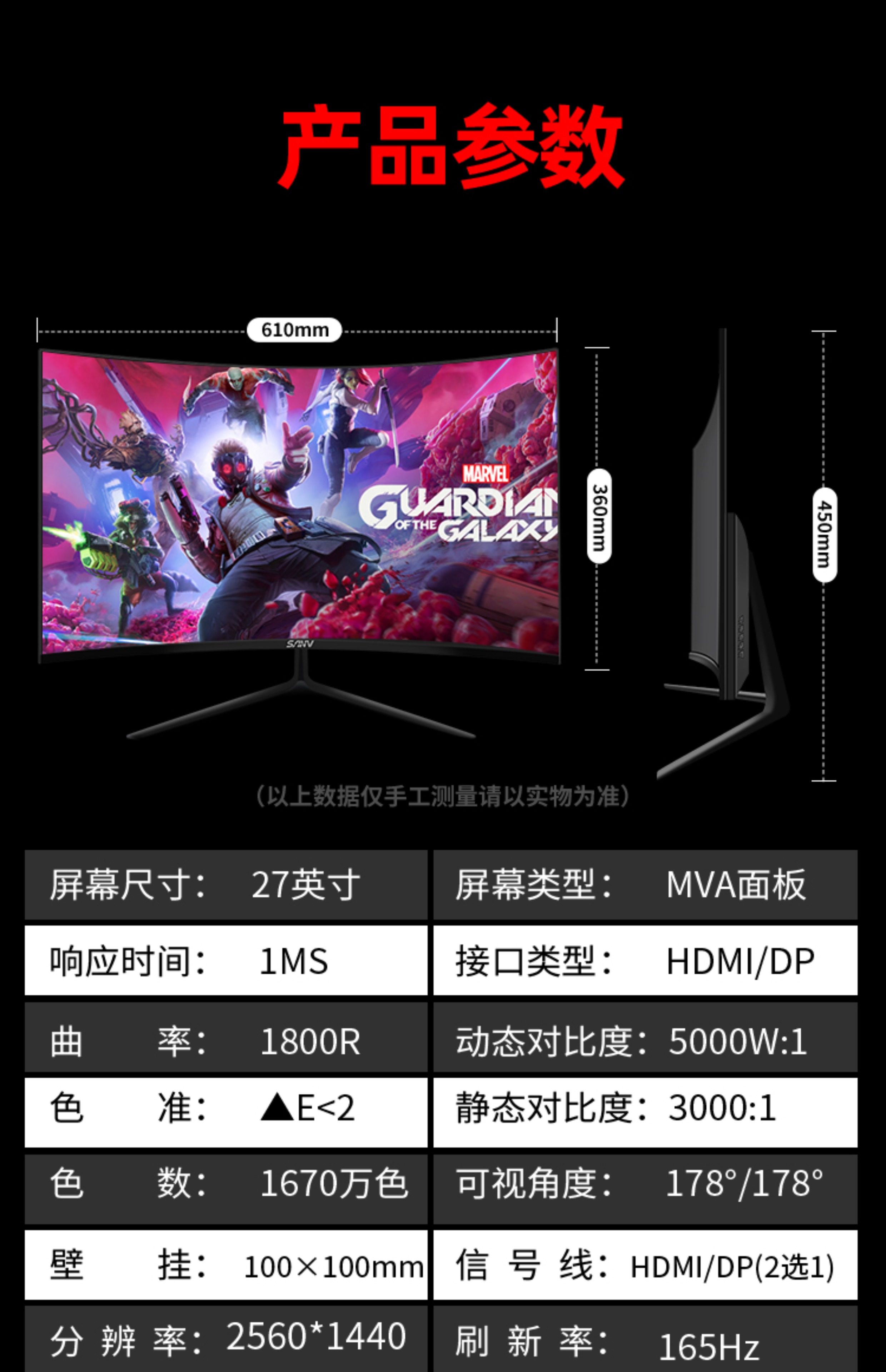 32inch Computer Desktop 144Hz Gaming Curved 34-Inch Fish Screen 27-Inch Gaming 165Hz Gaming 2K Lcd Monitor