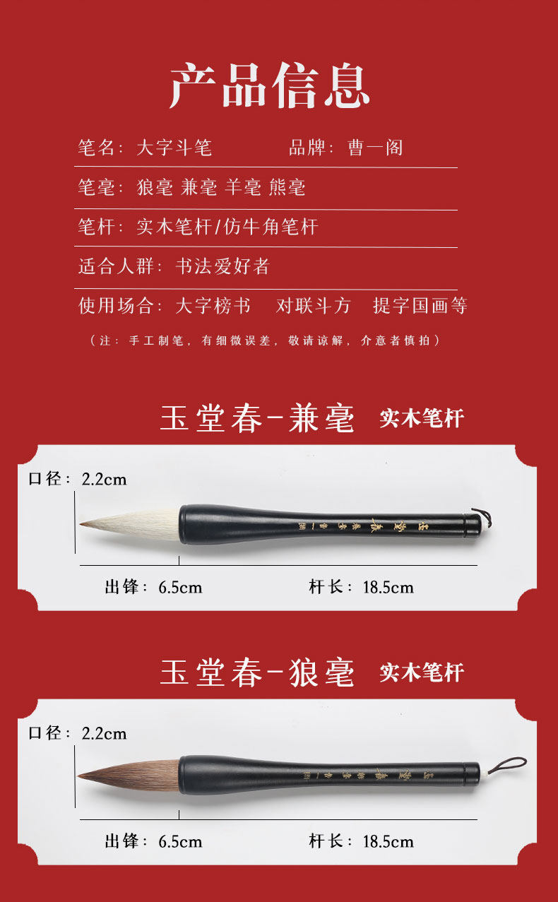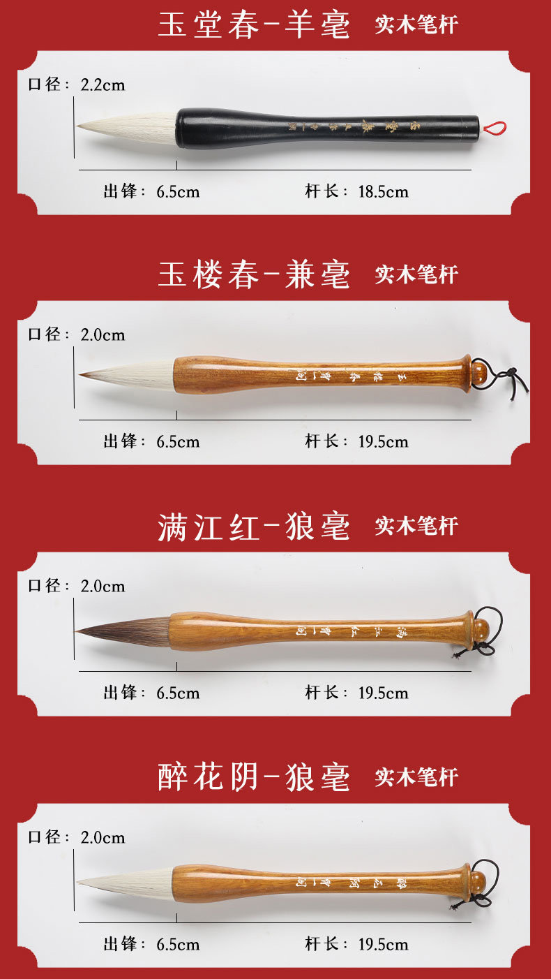 | Color Classification | [Hot Selling]Yutangchun-Jianhao,[Hot Selling]Jade Tower Spring - Jianhao,[Hot Selling]Yutangchun-Langhao,[Hot Selling]Azolla-Wolf Hair,[Hot Selling]Yutangchun-Yanghao,[Hot Selling]Zuihuayin-Yanghao,[Professional Grade]Couplet Pen-Jianhao,[Professional Grade]Long Front Pen - Both,[Professional Grade]Tianxingjian-Jianhao,[Professional Grade]Tianxingjian-Langhao,[Professional Grade]Tianxingjian-Yang Hao,[Professional Grade]Tianxingjian-Xiong Hao |