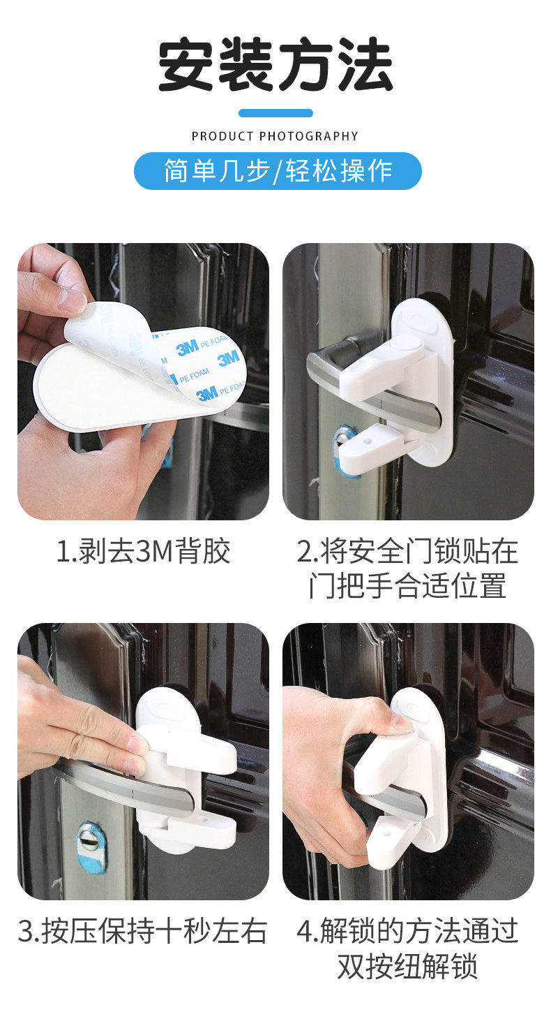 2 Installation-Free Door Locks, Bedroom Wooden Door Handle Locks, Child Safety Locks, Pet-Proof Balcony Swing Door Locks