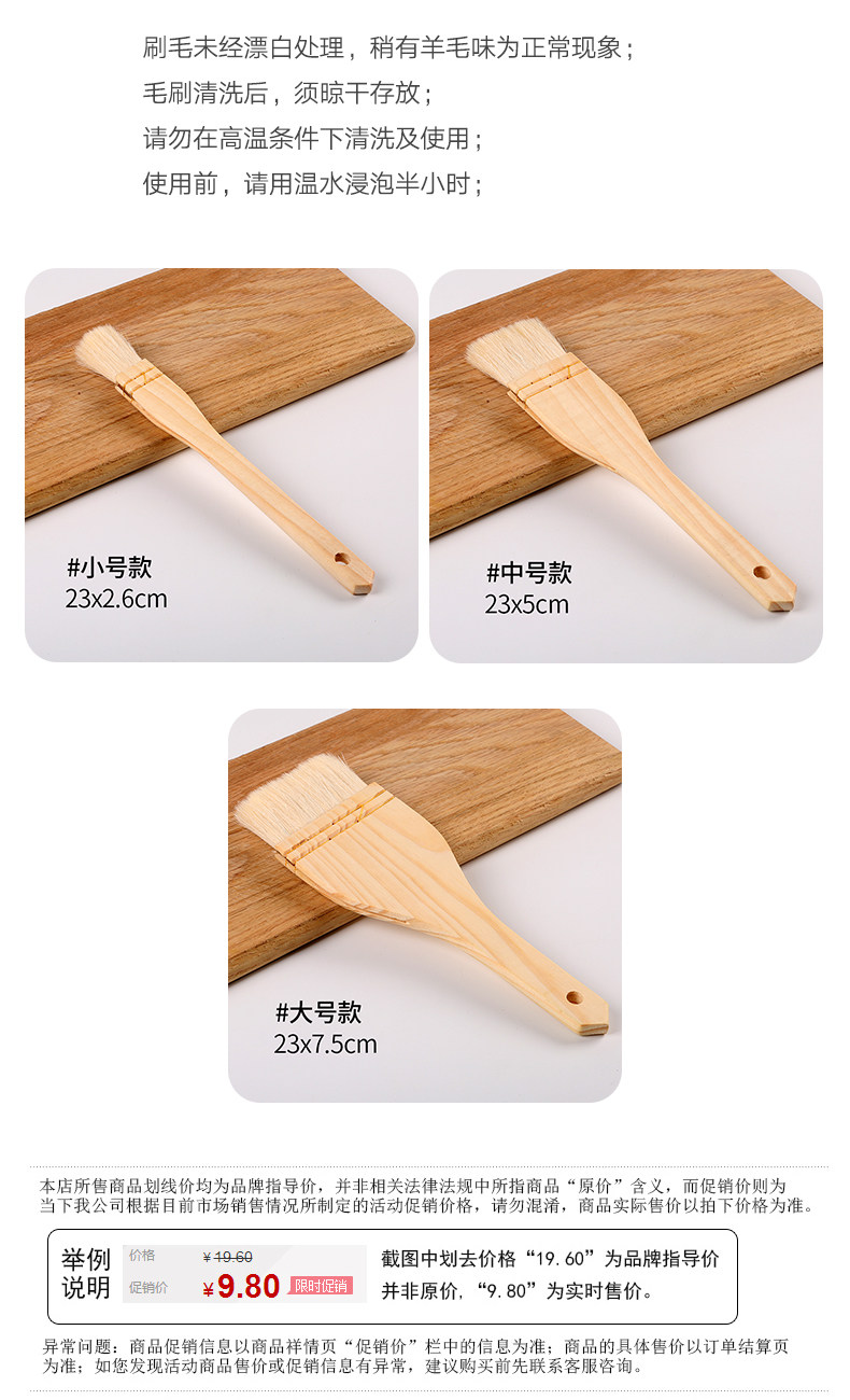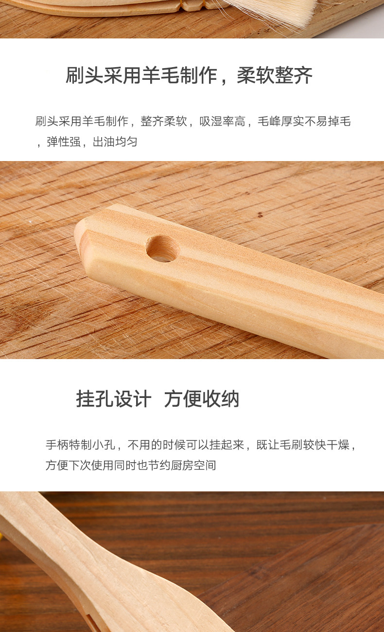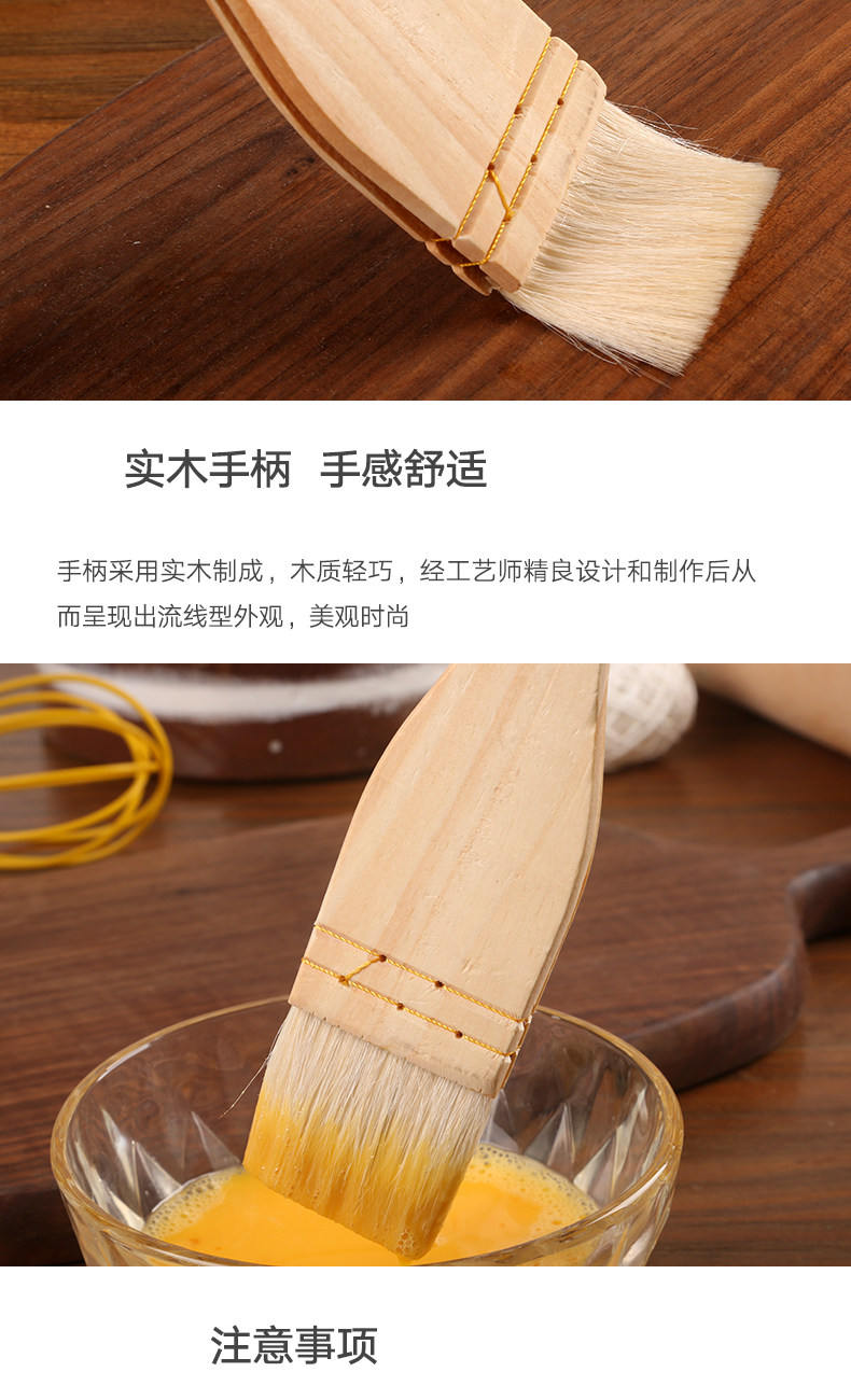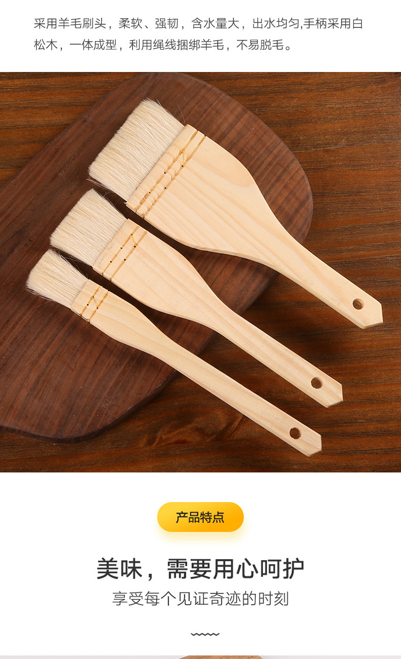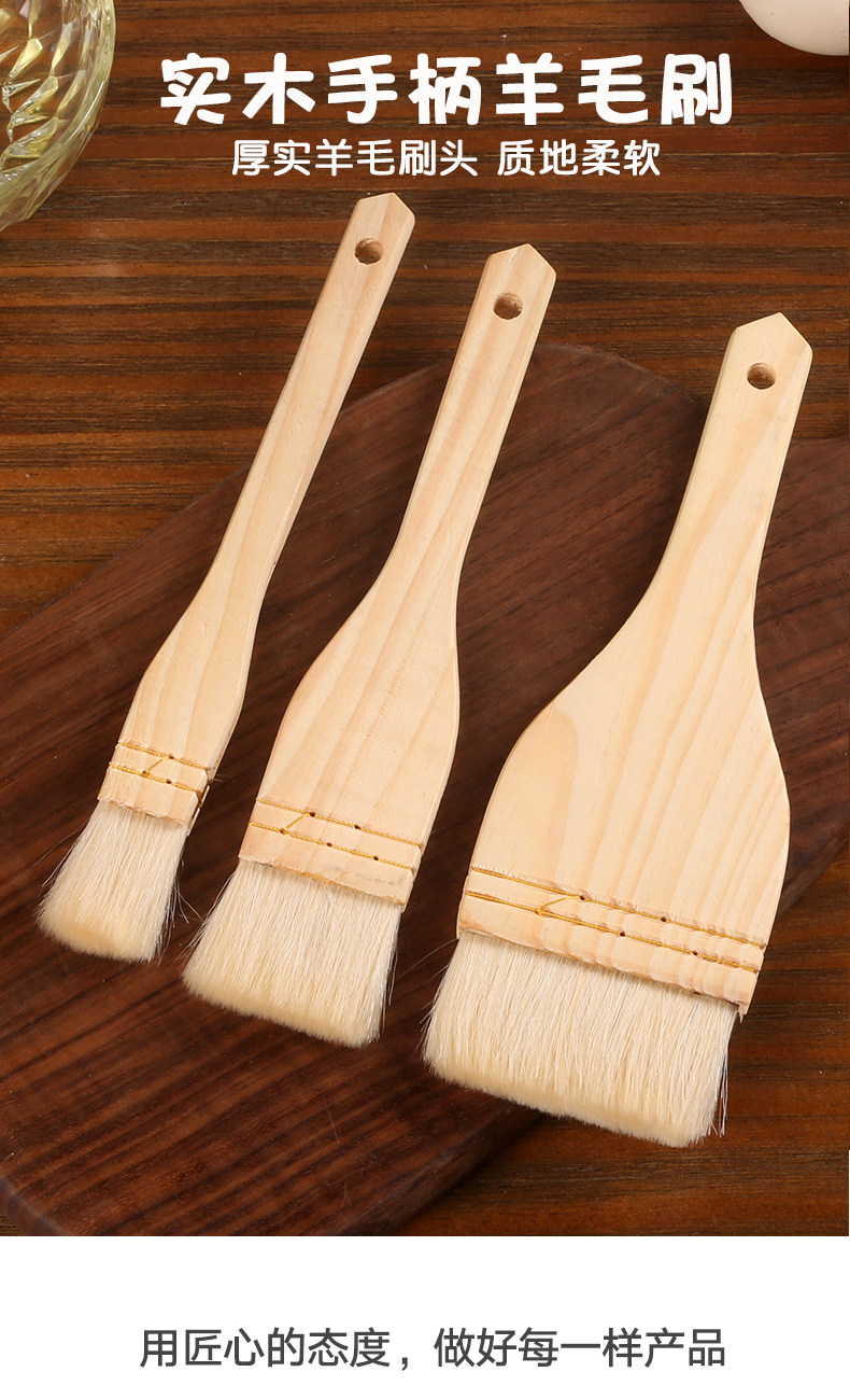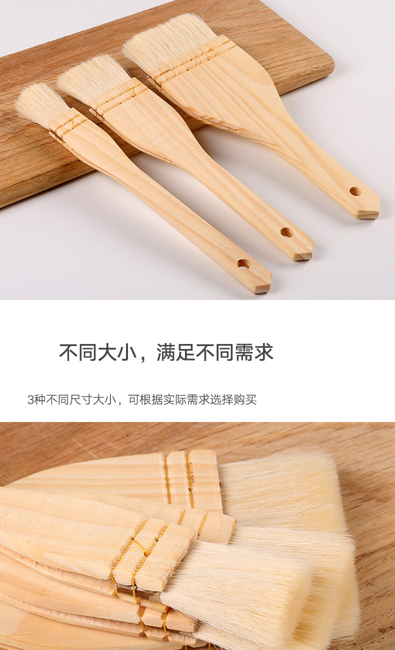 Wooden Handle Wool Brush Egg Liquid Mooncake Brush Pizza Brush Soft Bristle Food Brush Large, Medium, Small Baking Tools