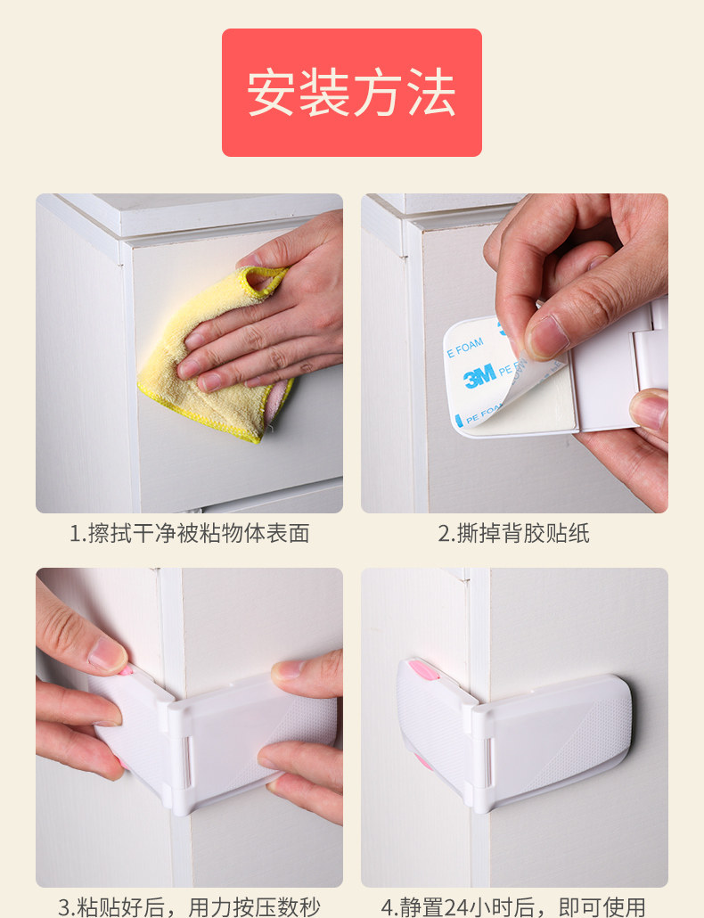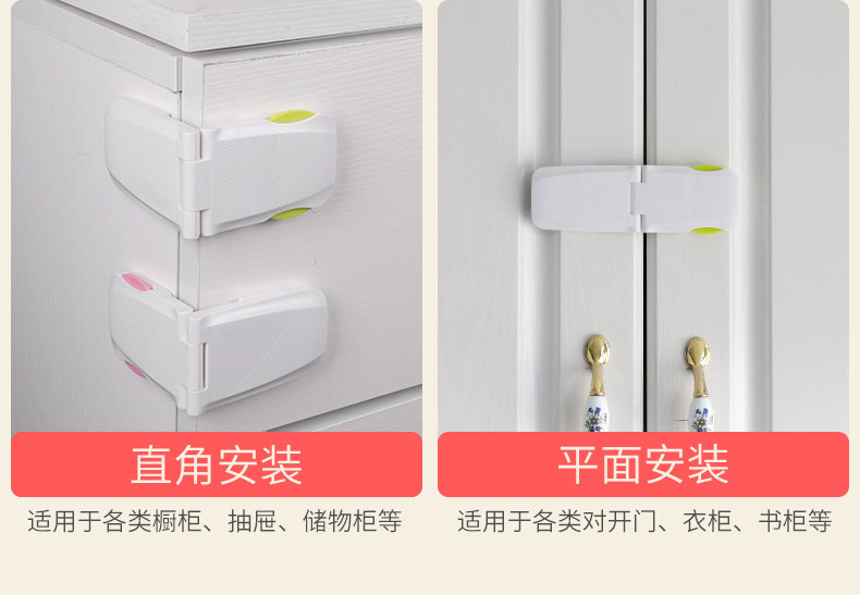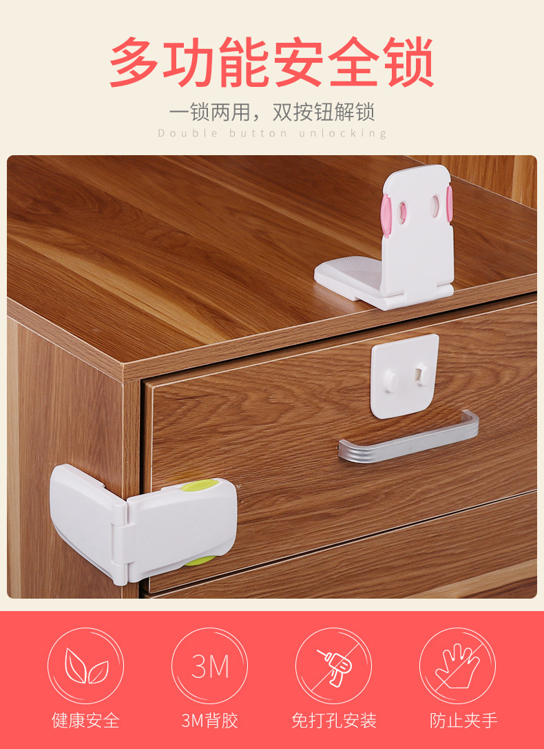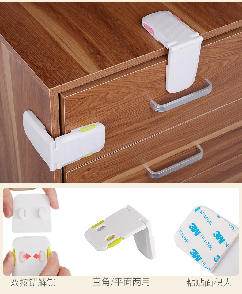 Installation-Free Drawer Lock, Double-Door Cabinet Lock, Child-Proof Anti-Pinch Cabinet Lock, Right-Angle Flat Dual-Purpose Lock, Refrigerator Lock