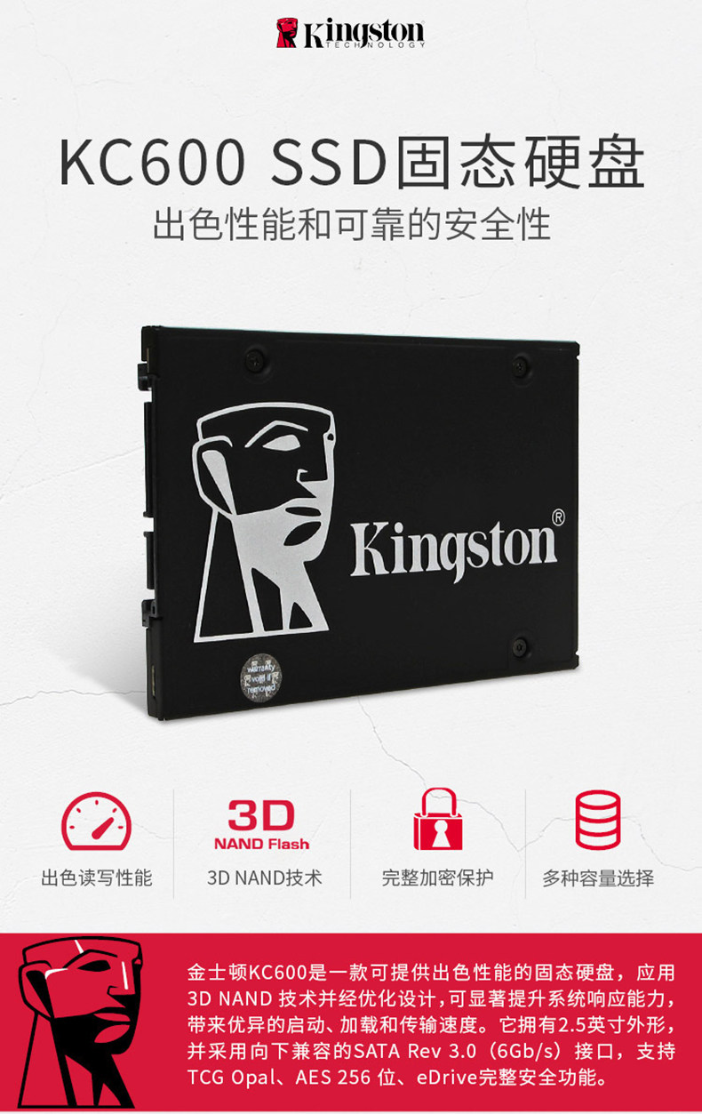 Kingston Kc600 256g Solid State Drive Laptop Hard Drive Desktop Computer Ssd Sata Interface 2.5inch